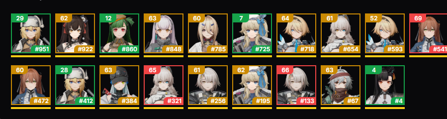 Китайские тирлисты и гайды от ReTempesta: https://gf2-bbs.exiliumgf.com/user?id=11456