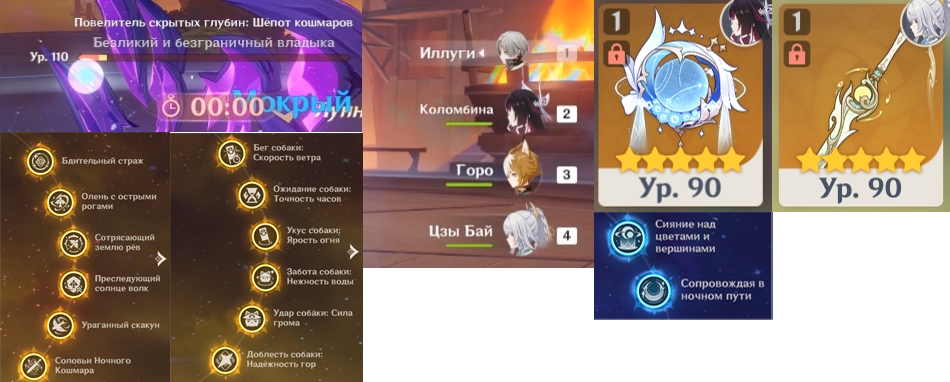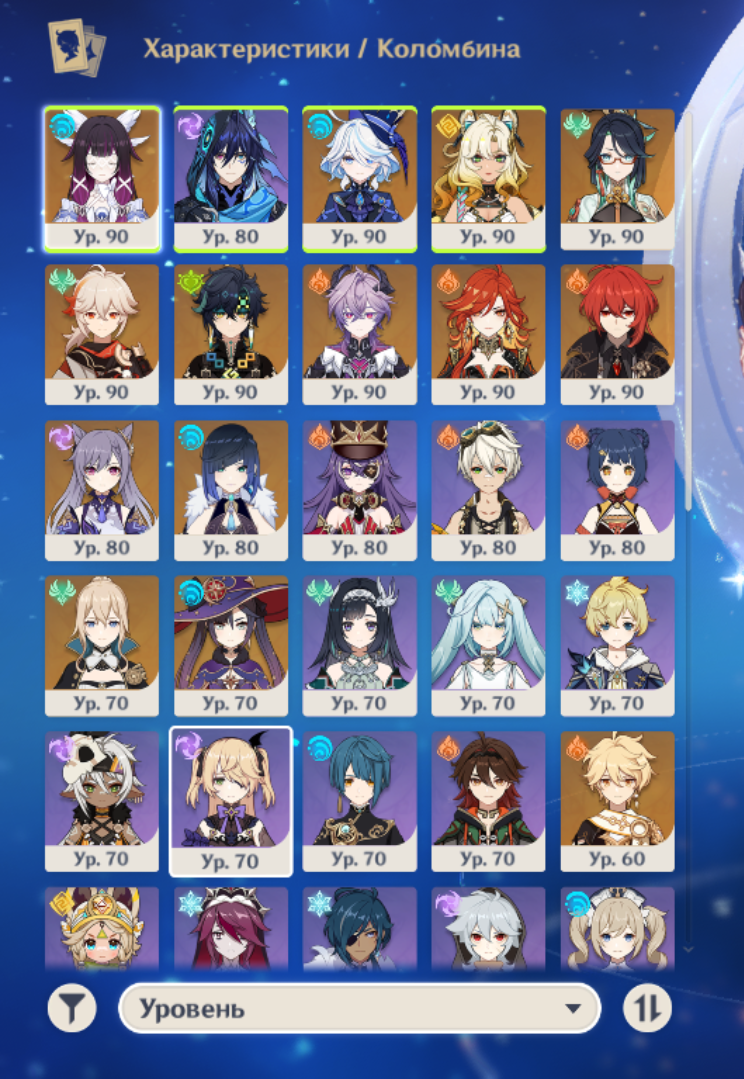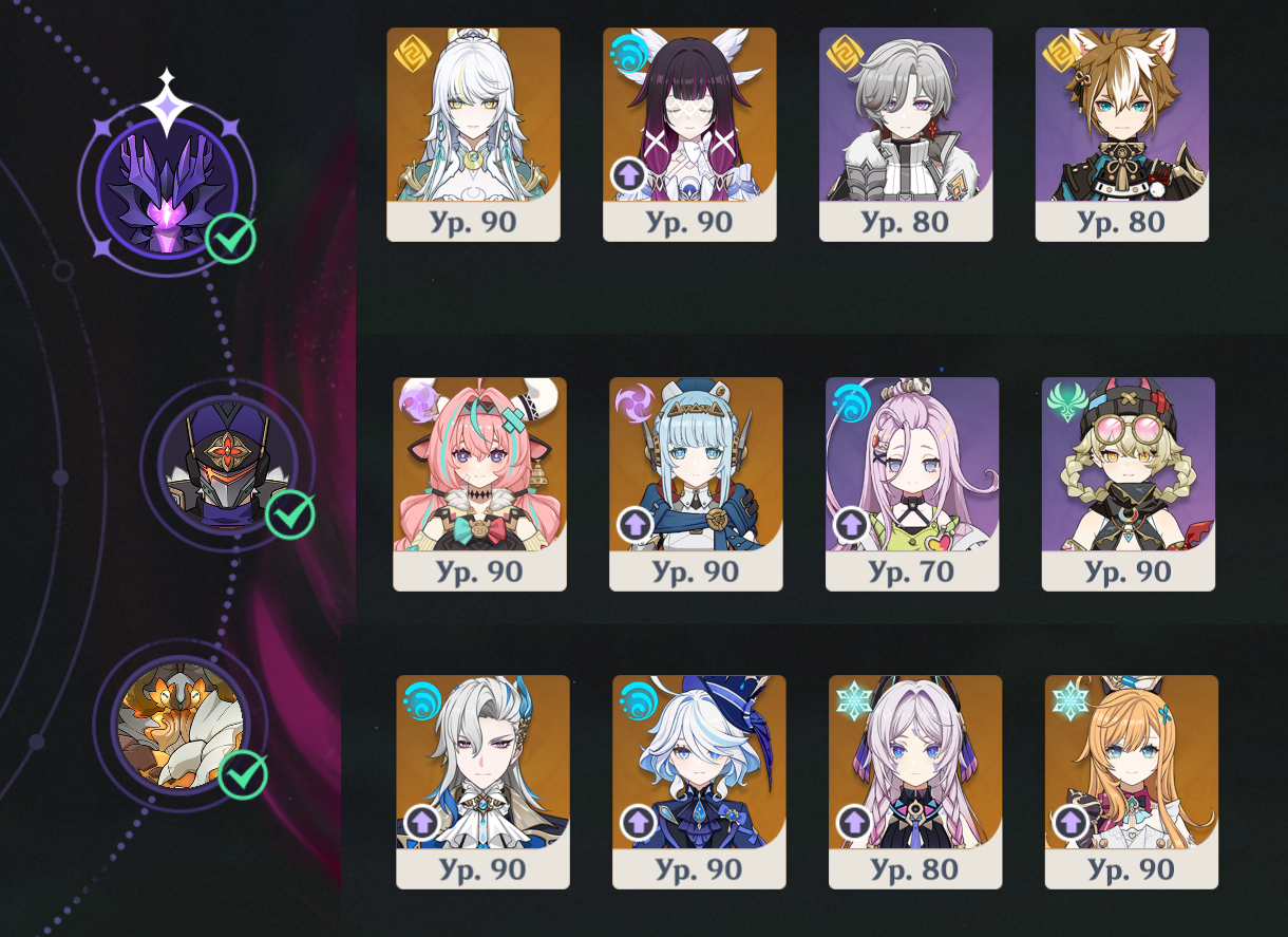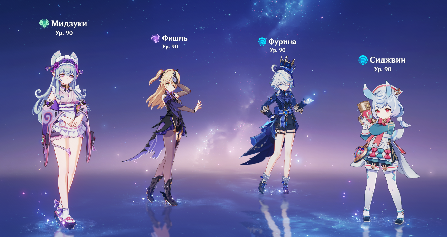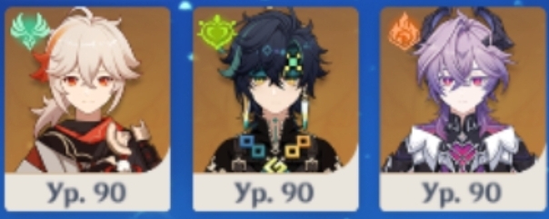 > бегаю с пачкой из начальных героев: ГГ, Кайя, Эмбер, Лиза, из того что смог вытащить из баннеров: ноэлль, бэй доу, джинн