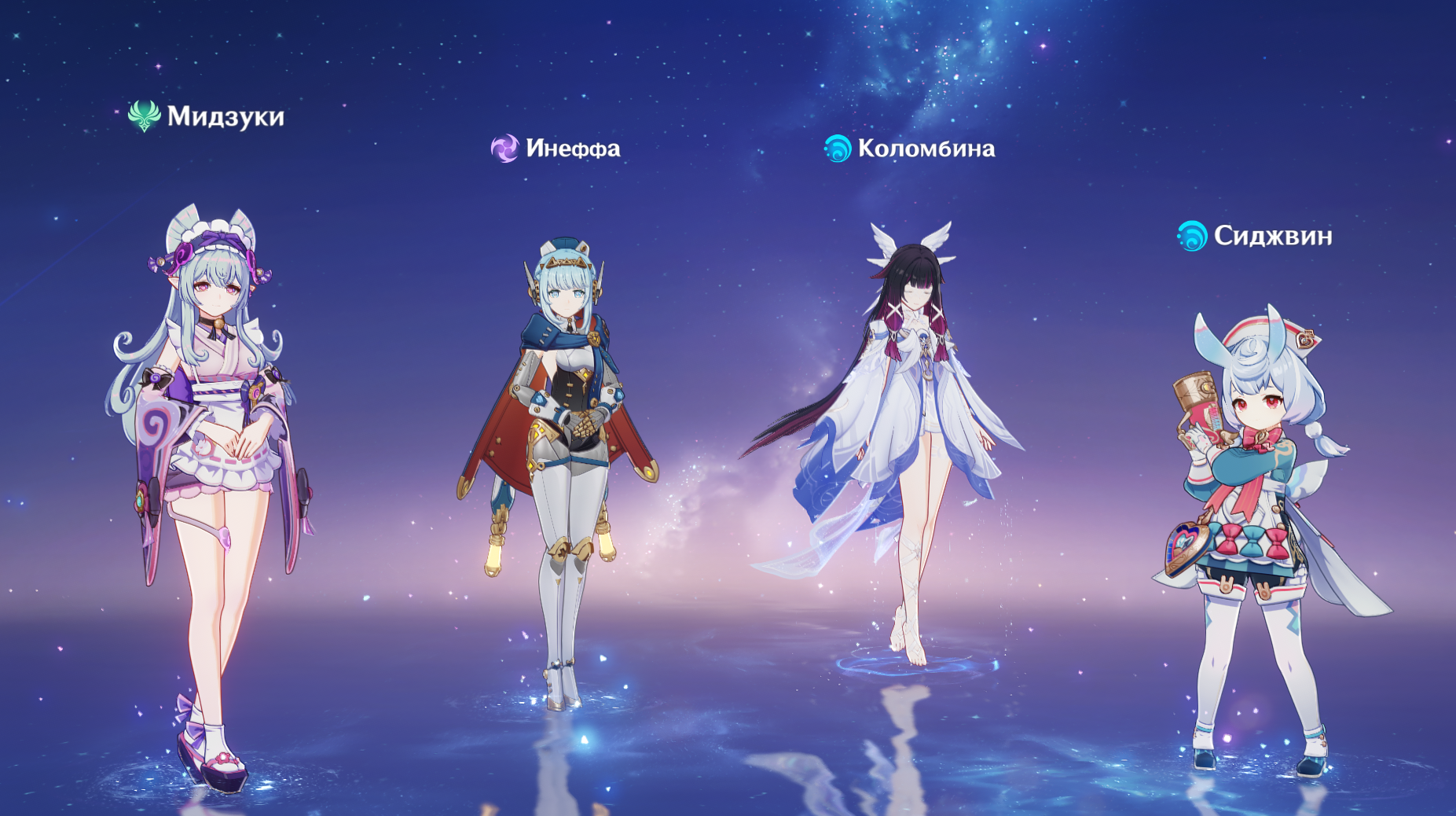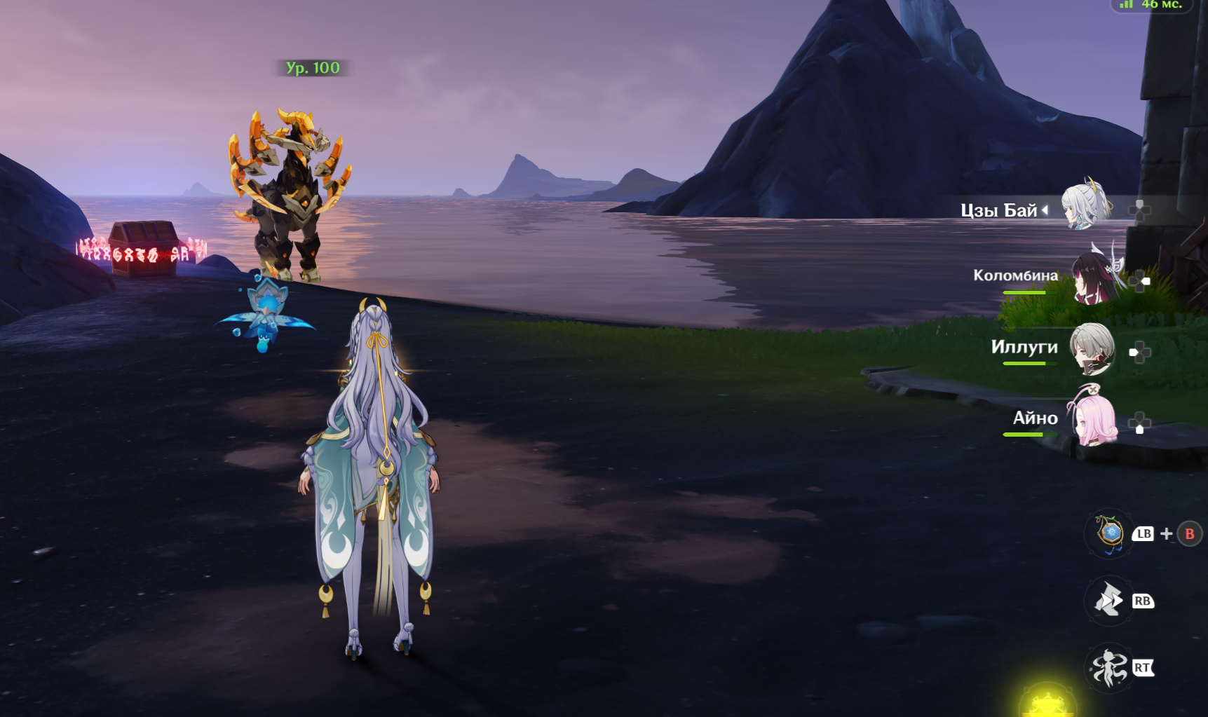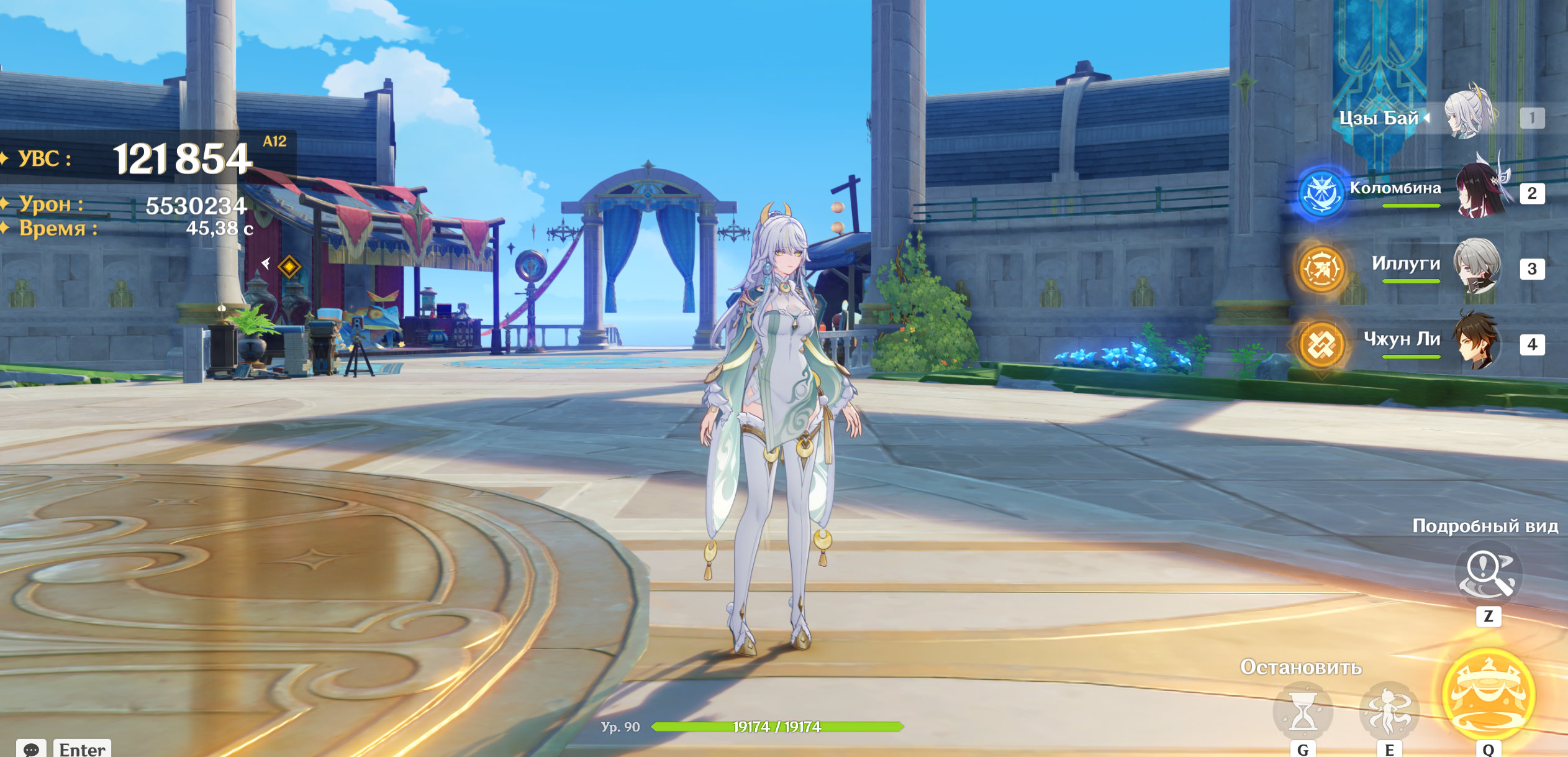 > бегаю с пачкой из начальных героев: ГГ, Кайя, Эмбер, Лиза, из того что смог вытащить из баннеров: ноэлль, бэй доу, джинн