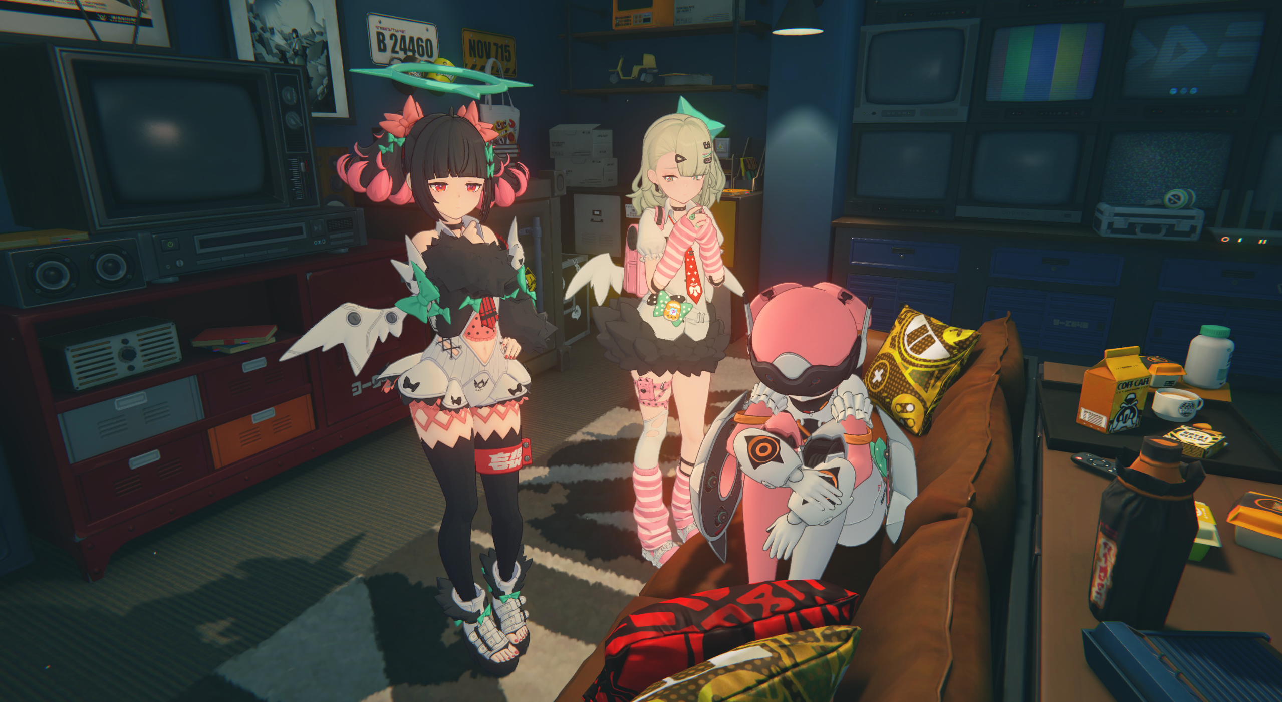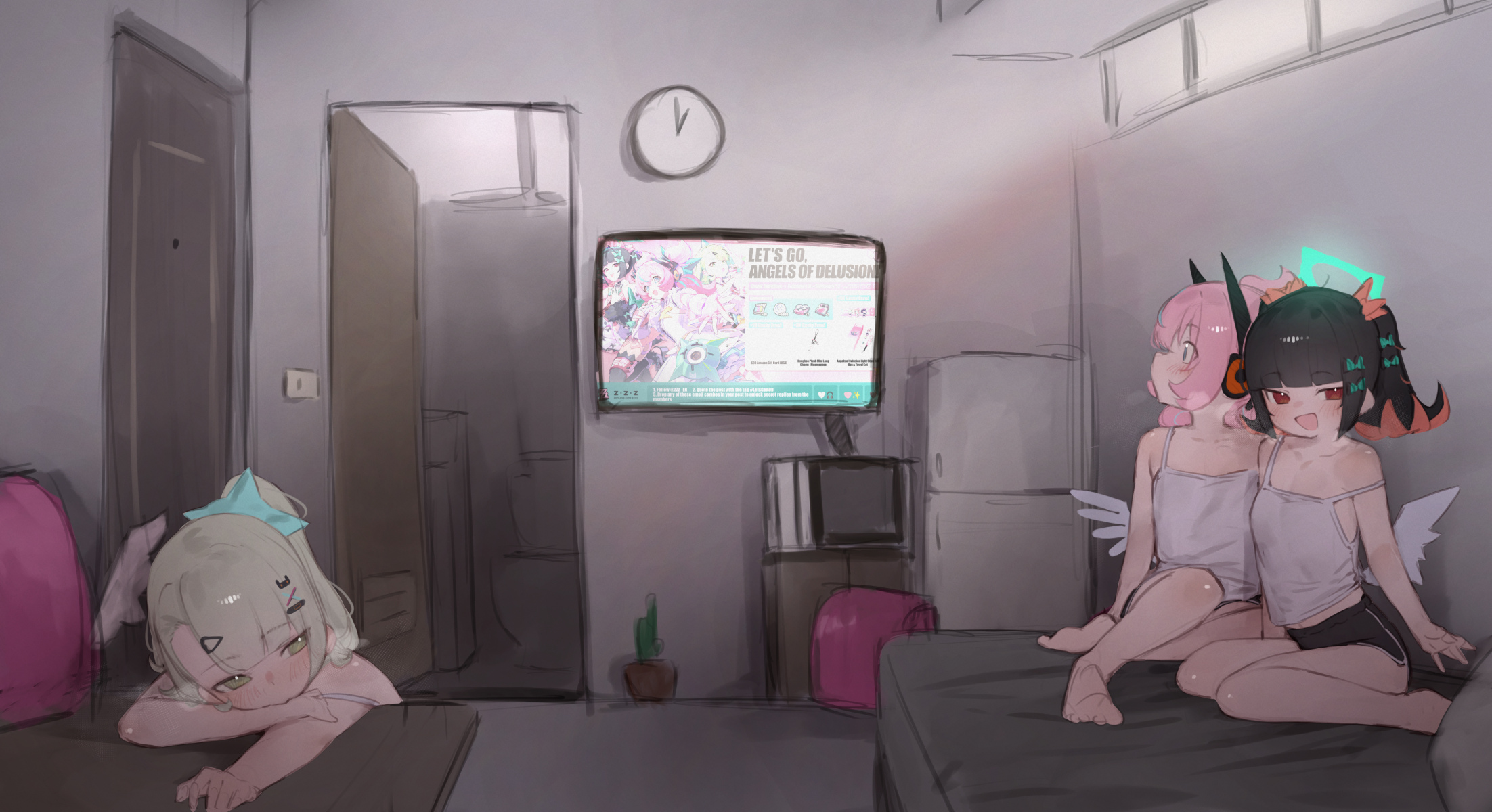— Белль, Санна, вы весь вечер играете. Отдохните немного. — Вайз, ты загораживаешь мне экран! — В этот раз я точно выиграю! Ария, помогай! — А? Мне... мне тоже играть?