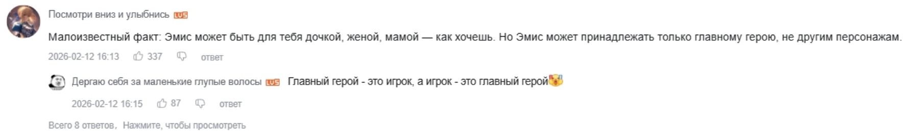 Я кстати щас понял насколько же Писевор гениально сделал сюжетку. По сути он просто взял уже привычный для игры троп, когда у персонажа весь мир вертится вокруг ггшки, когда персонаж готов ради ггшки чуть ли не жизнь отдать, а также то что персонаж знал ггшку в прошлом, однако Писевор хитро упаковал этот троп в обертку семейных уз и успешно скормил аудитории, которая всегда против подобного протестовала. Хотя под оберткой все та же знакомая начинка - эмет чуть больше чем полностью завязана на ровере, ее мотивация вертится вокруг ровера, думает она в основном тоже только о ровере, идет на жертву в общем-то тоже ради ровера. Она скорее полная противоположность типажу самостоятельного персонажа, для которого ровер ≠ весь мир, наоборот ее привязанность повысили до недосягаемого уровня. Что думаете?