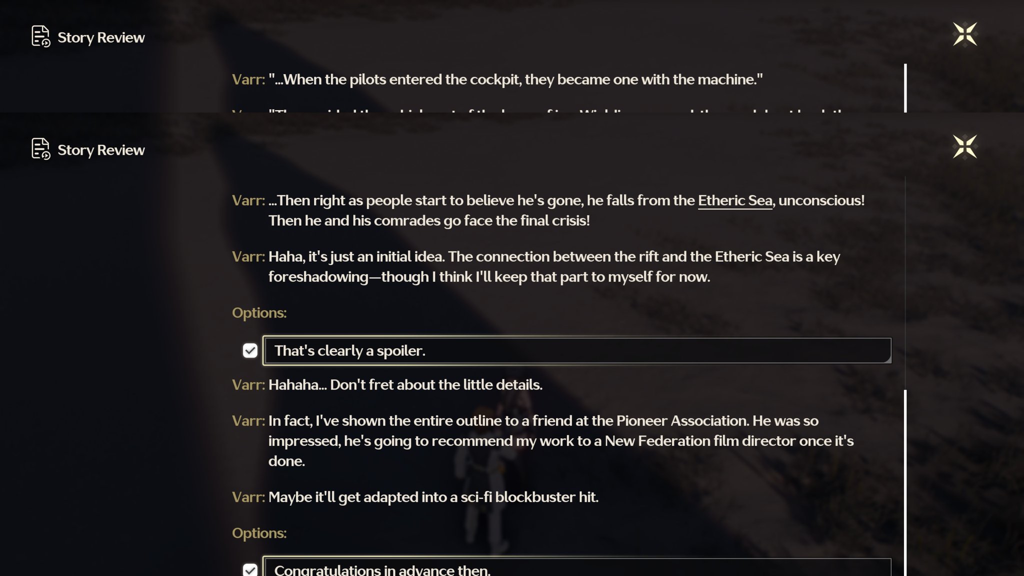 Какой же в вуве запутанный лор и сюжет. Вот с какого момента я должен был понять, что какая-то нёх в виде черной дыры, нависла над лахайроем? Увидел его впервые в катсцене, где он вылез, как черт из табакерки. В Ринасите тоже долго мусолили тему с приливом, а в итоге это оказалась здоровенная рыбина вжушк. В первой локе также увидели ебаку лишь в конце