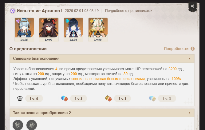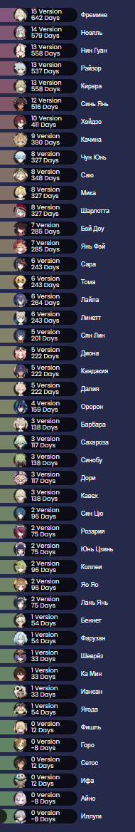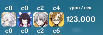 Айно С5 и без артов, Иллуга С2. Лошадь с мечом, поэтому крепкий щит нужен - Лань Янь С6. Арлекино с палкой, у Инеффы и Коломбины сигнатурки, созвездий ни у кого нет.