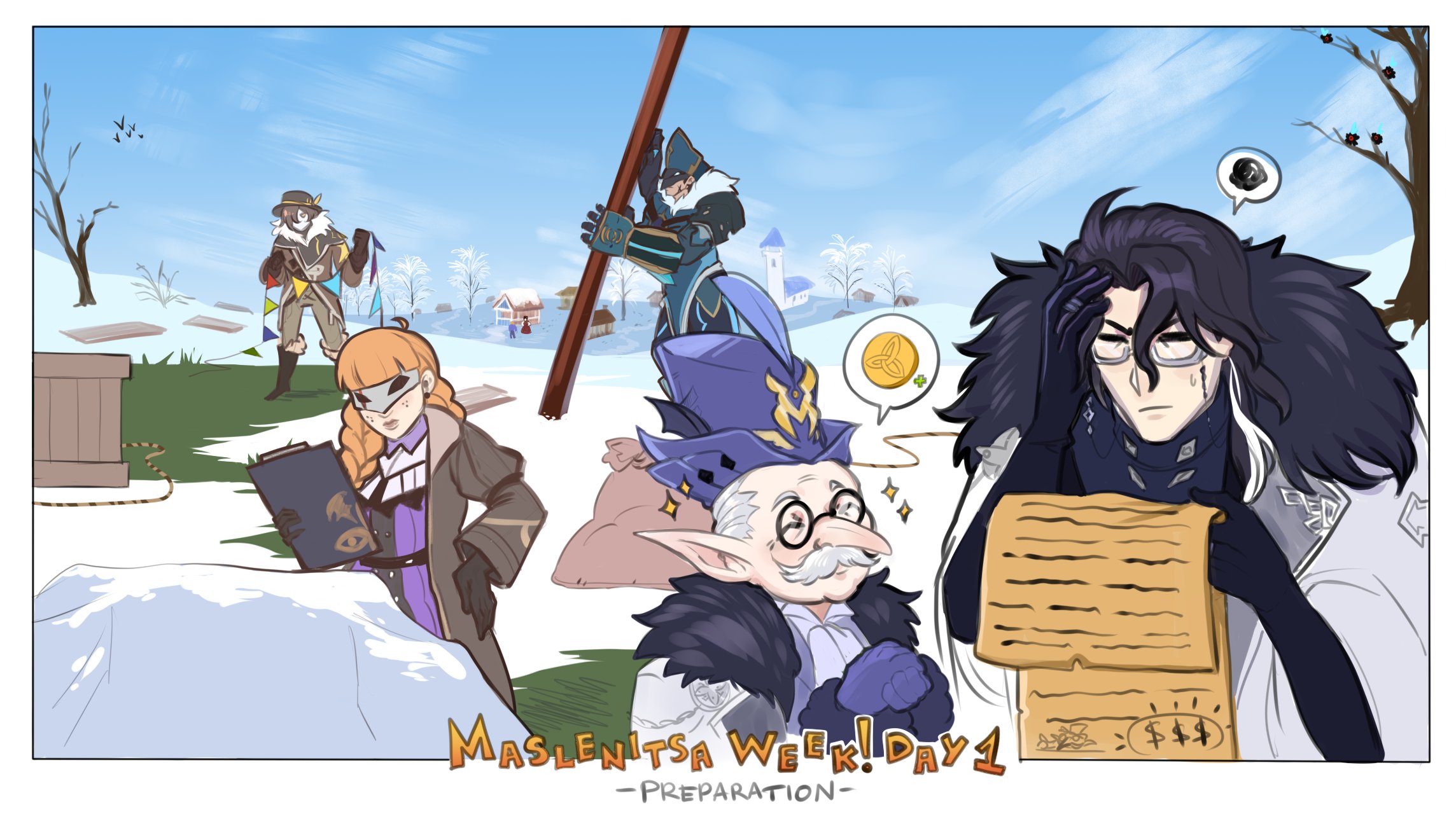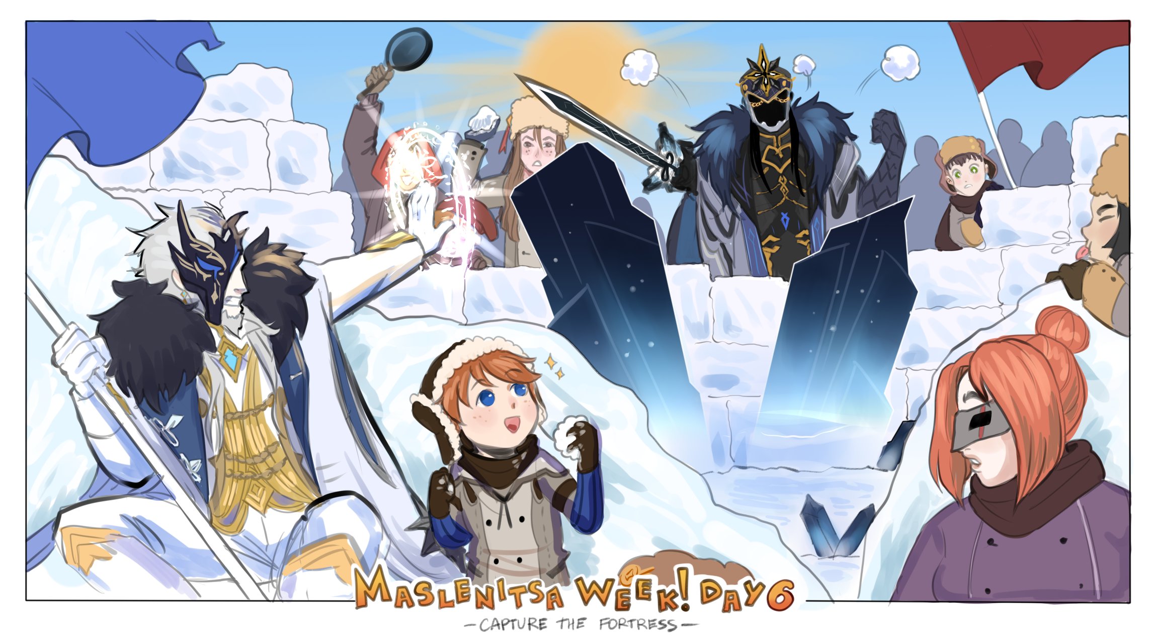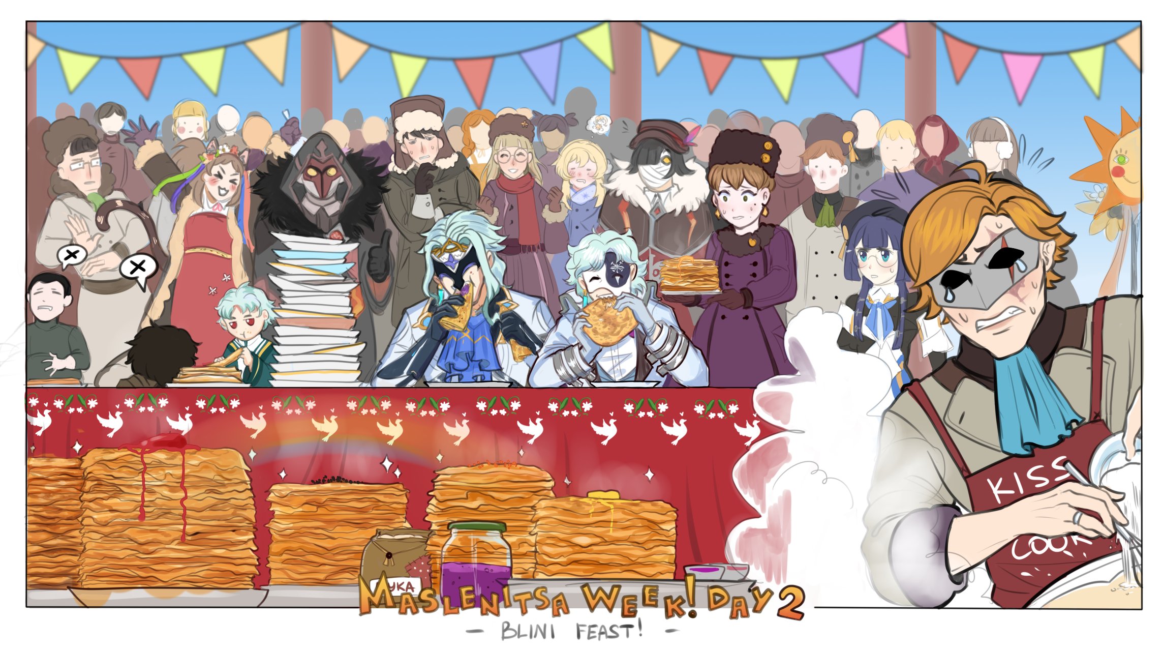 🥞 «Тёплое солнце освещает улицы, а в воздухе кружатся белые снежинки. Самое лучшее время насладиться прекрасной трапезой. Все блюда готовы, прошу к столу!» «Ням-ням, эти блинчики с сиропом просто восхитительны. Спасибо, Флинс!» «Какой сегодня роскошный пир, хе-хе. Сначала поесть или пойти погулять... Такая дилемма!»