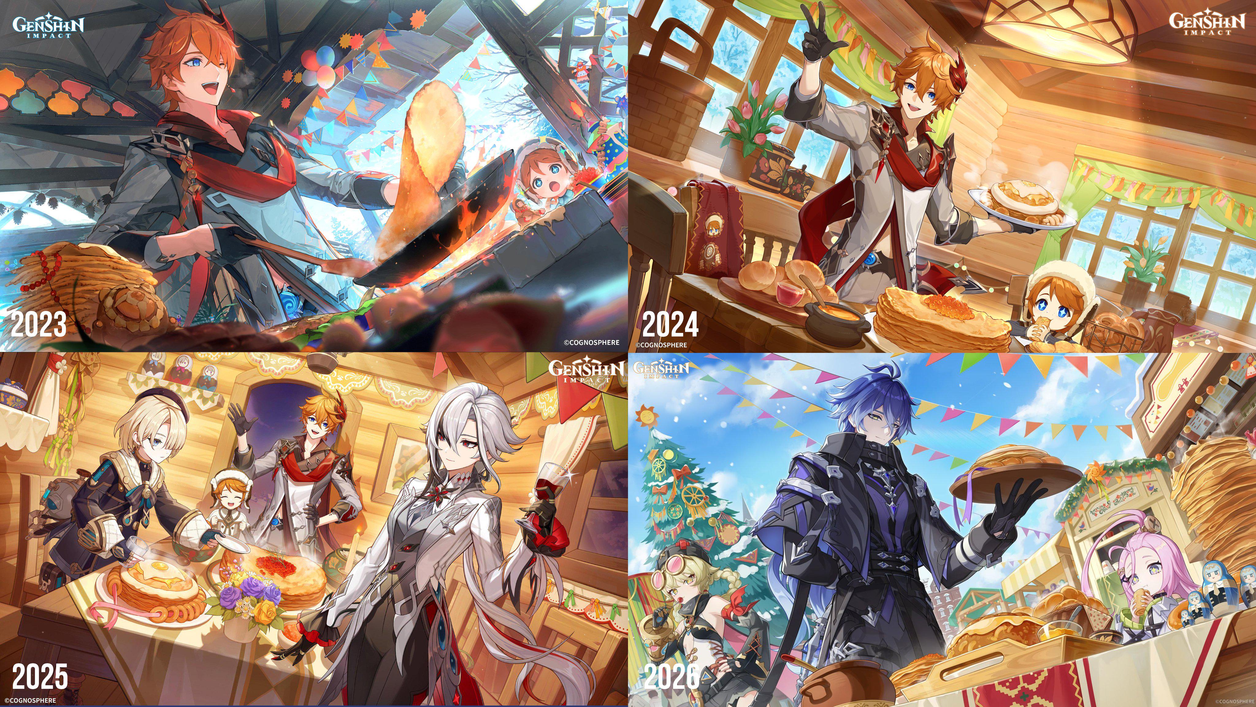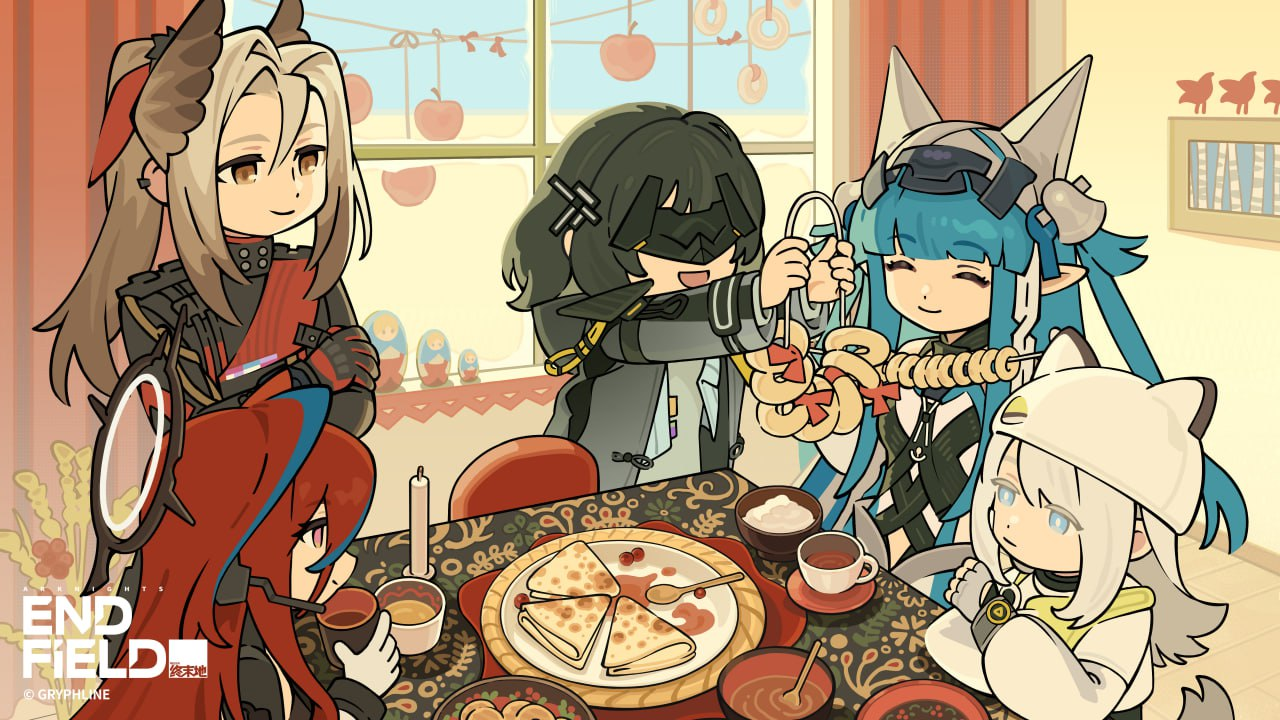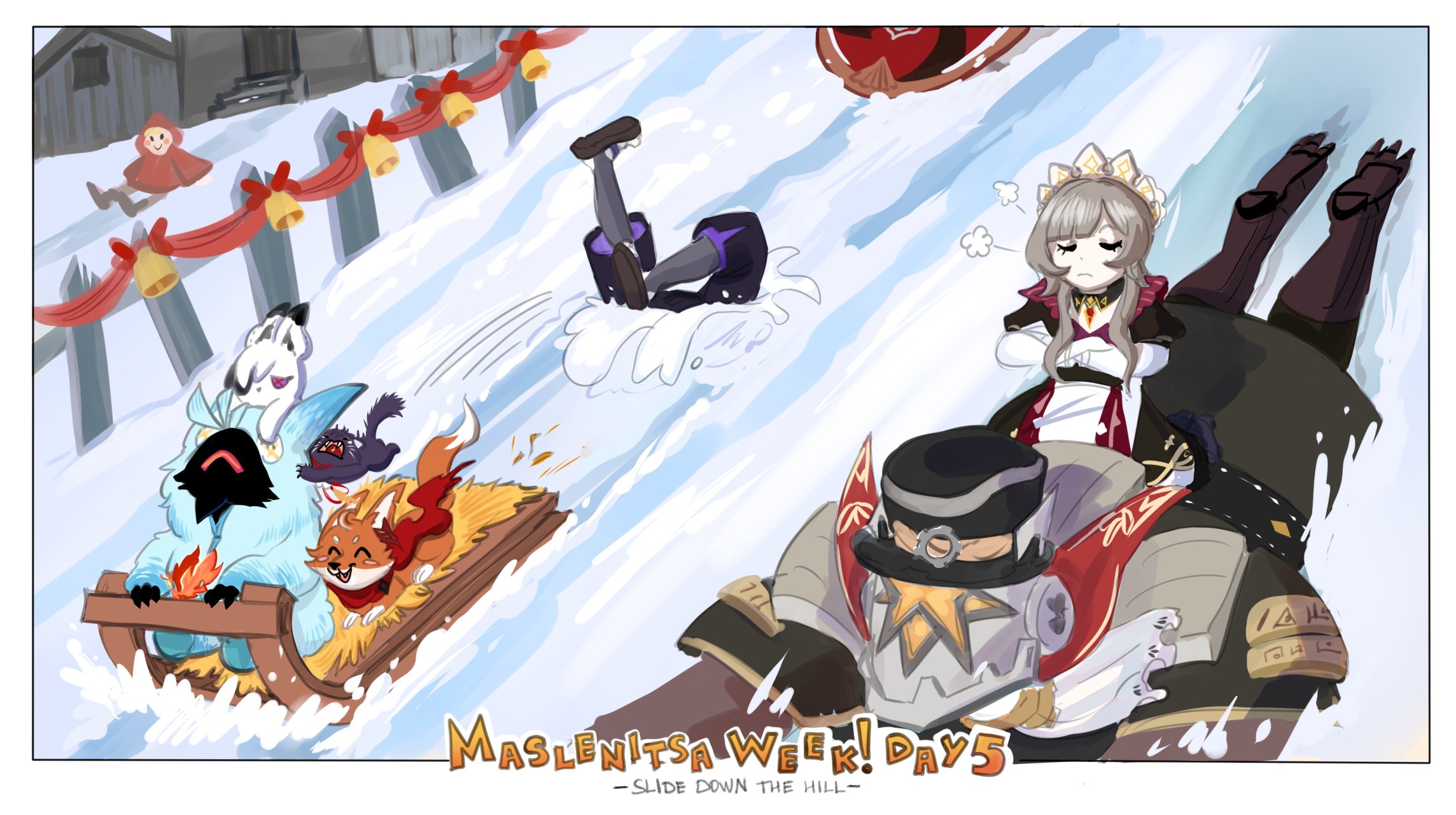 🥞 «Тёплое солнце освещает улицы, а в воздухе кружатся белые снежинки. Самое лучшее время насладиться прекрасной трапезой. Все блюда готовы, прошу к столу!» «Ням-ням, эти блинчики с сиропом просто восхитительны. Спасибо, Флинс!» «Какой сегодня роскошный пир, хе-хе. Сначала поесть или пойти погулять... Такая дилемма!»