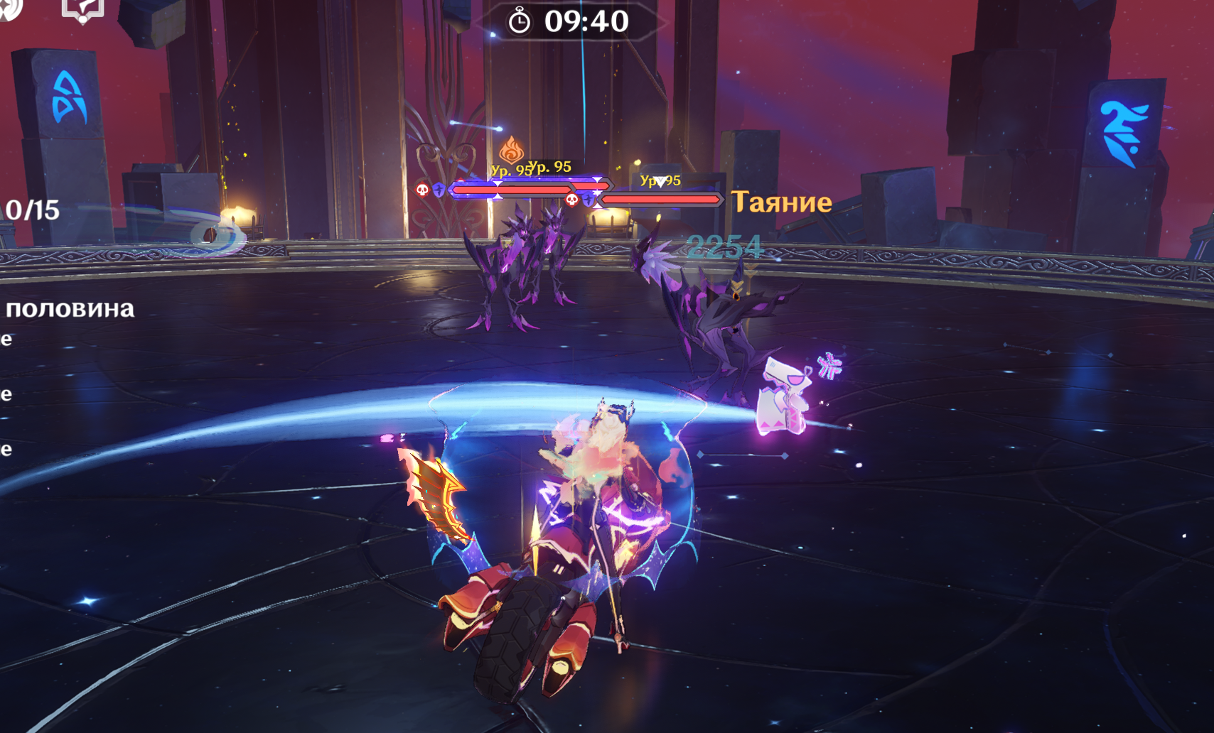На втором этаже здоровые "охотники пустошей" стукают сильно, поэтому без щита никак. У Лань Янь щит несокрушимый, но всего на 12.5 сек, поэтому Лошадь успевает лишь три особые тычки раздать, но этого хватает с головой.