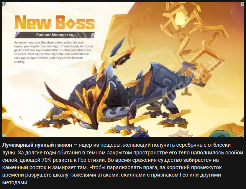 >>6420882 Так читай его пассивки. Один протык уже обсосал, что босс имеет гео щиточки, после слома щитка на тебя накладывается дебафф как от мотылька и резист к гео падает, +дается бафф 50% урона. Короче лжелошадб ломает щит и ебашит очень сильно, пока остальные с минус 100% кш пукают