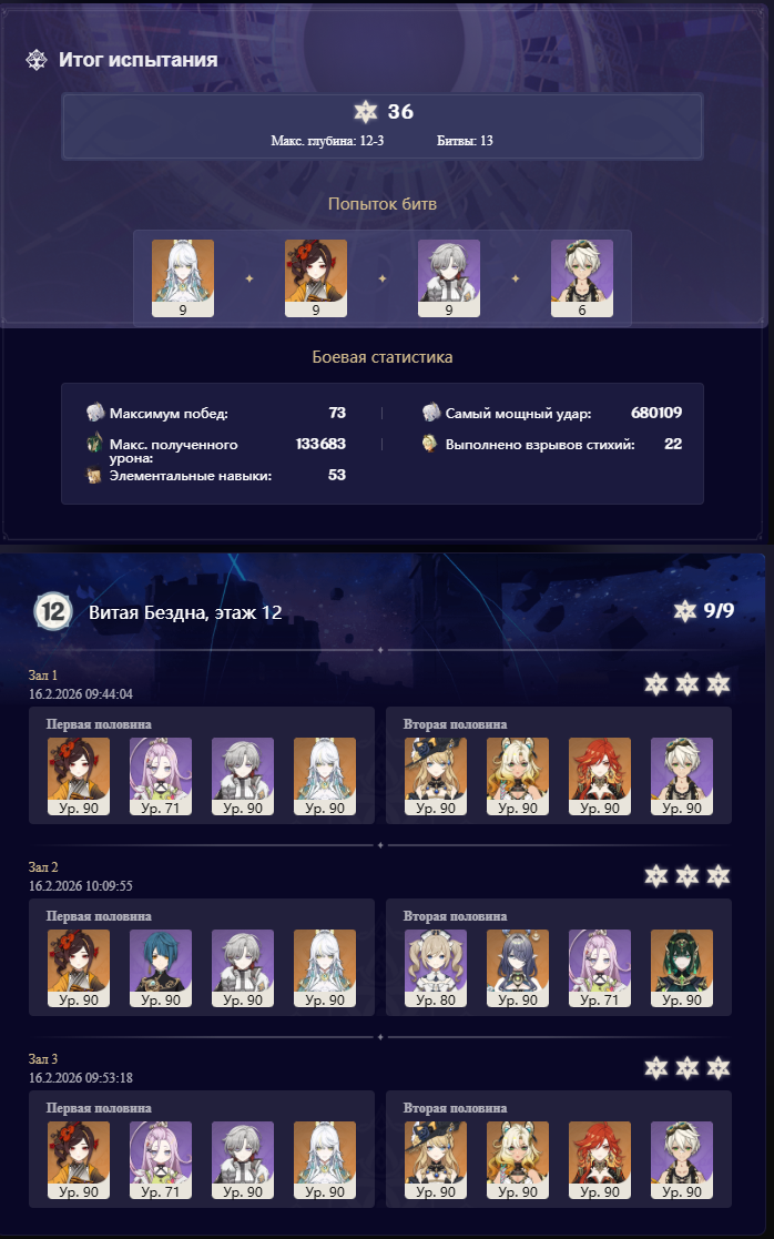 Во втором зале Лошадка отлетела, пока я зазевался. Я чет думал, что она у меня под защитой крыни всегда, а это оказался щит с1 Колумбины лол, просто она мне в тенролле прилетела и я даже не читал, че она там делает, без нее не так приятно играется конечно. Боссов даже не чекал, чисто баффы прочел сторон и тыкнул команды, думаю еслиб в обоих командах двух луновичков не было, я бы 36 не осилил, ахуеть конечно кокблоки пошли даже в бездне, которая как мы знаем не показатель.