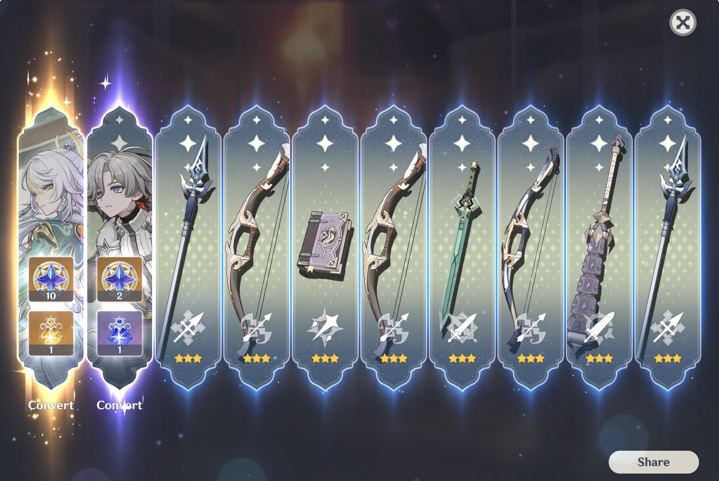 Это просто смешно, я за 90 круток получил двуруч фавония, 2 церемониальных лука и сейчас Кавеха, а Иллюга с0. При этом все эти прокруты были по одной четверке в пуле а лошадь с луком