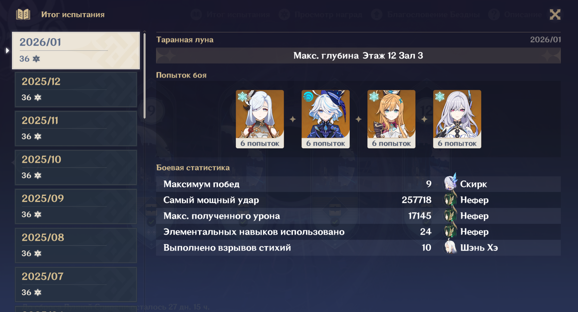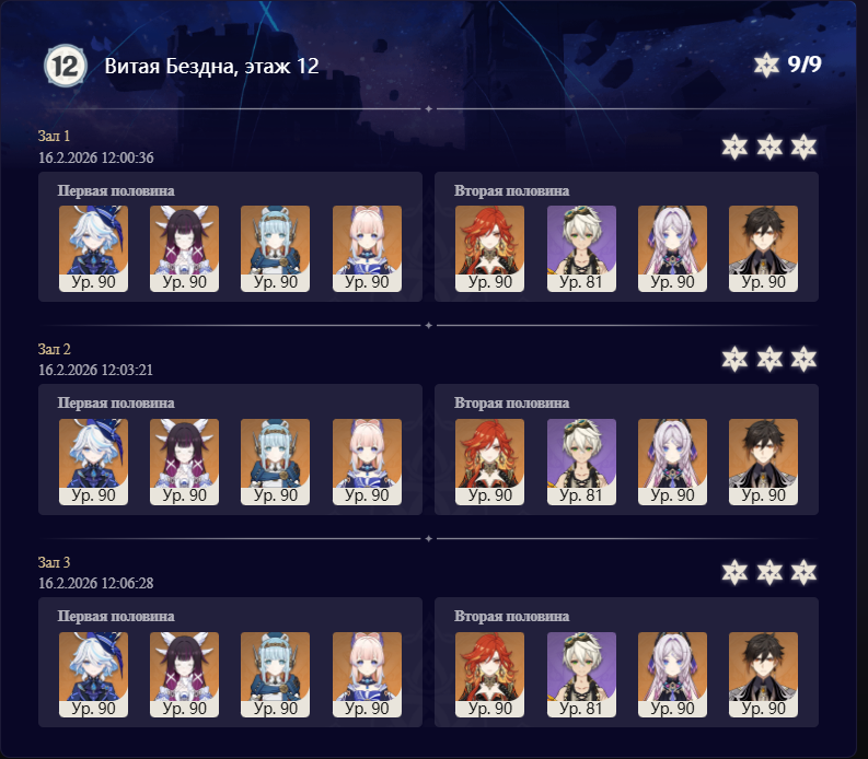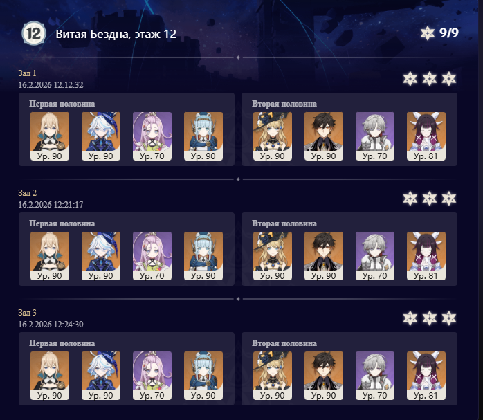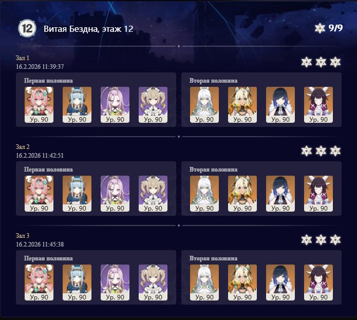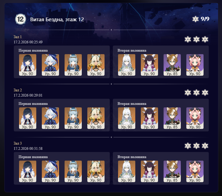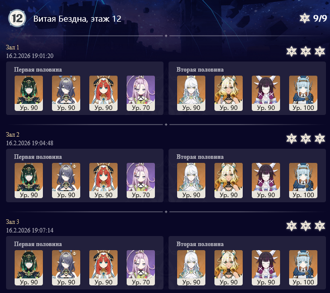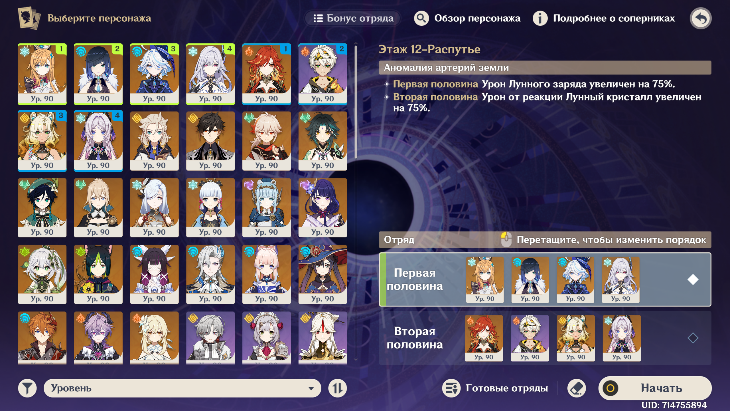 Как же копытные самки ебут. Во втором зале Кобылка разик откисла, после чего взял бафф этажа на отхилл после ульты, а сейчас думаю, у меня же с2р1 Шило есть, нахуя я Горо ей дал лол. Все р0 и с1, кроме Клумбы, она с1, четырки с6. Показывайте чем сами траили, по мне это самая кокблочная из бездн и если бы у меня не было Клумбы и Лошадки под кокблоки, то не было бы и 36, единственный раз когда я бездну на 36 не закрыл после первых взятых 36 было во время Сумеру с крио и гидро весниками, ибо ни Нахиды ни пидорадзухи на ту бездну у меня не было, я вшоки, я думал бездна нынче это так, забежать гемы забрать и выйти, после релиза натиска, а тут столько кокблоков напихали.