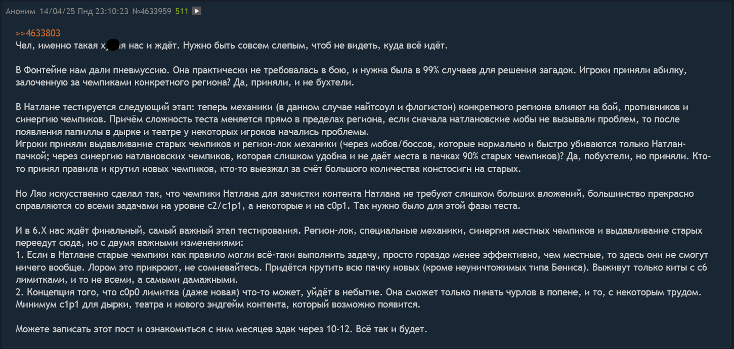 Пиздеж и провокация! Не с0 пачки, а безконстовые эпики на манер кавеха раньше и то бодрее чувствовались, чем нынешнияя "мета". Ляо ахуел в край, я считаю справедливым класть хуй на энд-контент, потому что контента там никакого и нету, тупо удавка и чек на кручение всех подряд.