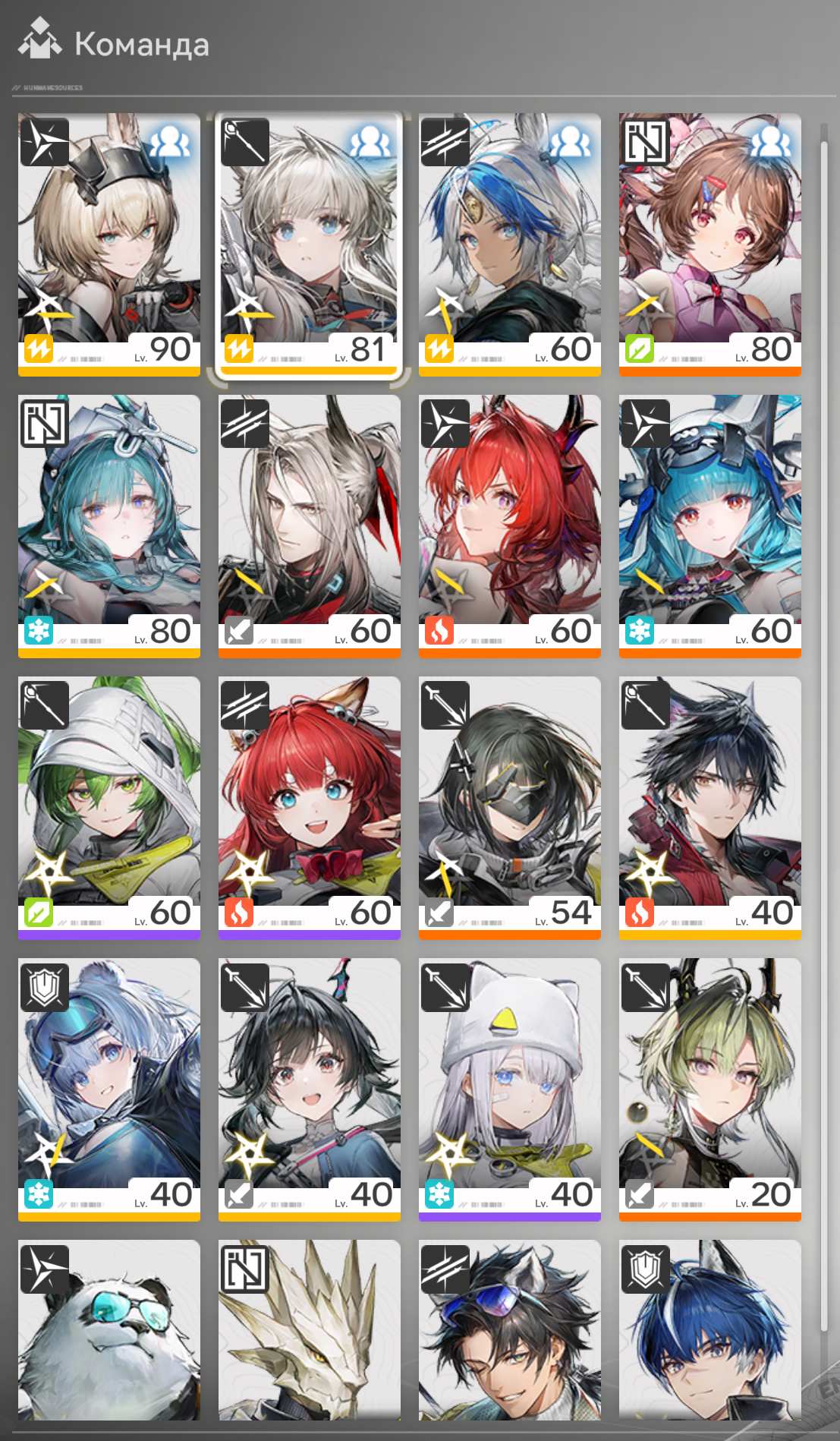 дальше бафферы/саппорты на 60 для синергии с дд, монумент на агониях требует именно этого. не распыляйся на всех, смола на крутки важнее, чем ровный рост всей команды.