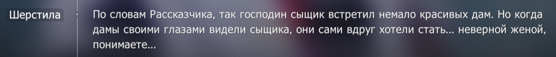 Вообще, тут очень продуманные диалоги с неписями. У этого чела на тот же вопрос другая линия разговора уходит в деление наследства, если твой батя помер, но стал призраком.