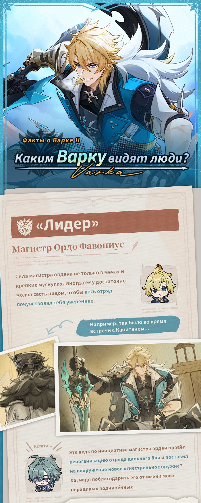 📙 «Цель этой книги - помочь читателям познакомиться с важными фактами о Варке, магистре Ордо Фавониус». Обычному человеку почти невозможно представить, как простой смертный мог стать легендой без древней родословной или благосклонности богов, опираясь лишь на неустанные усилия и несгибаемую волю.