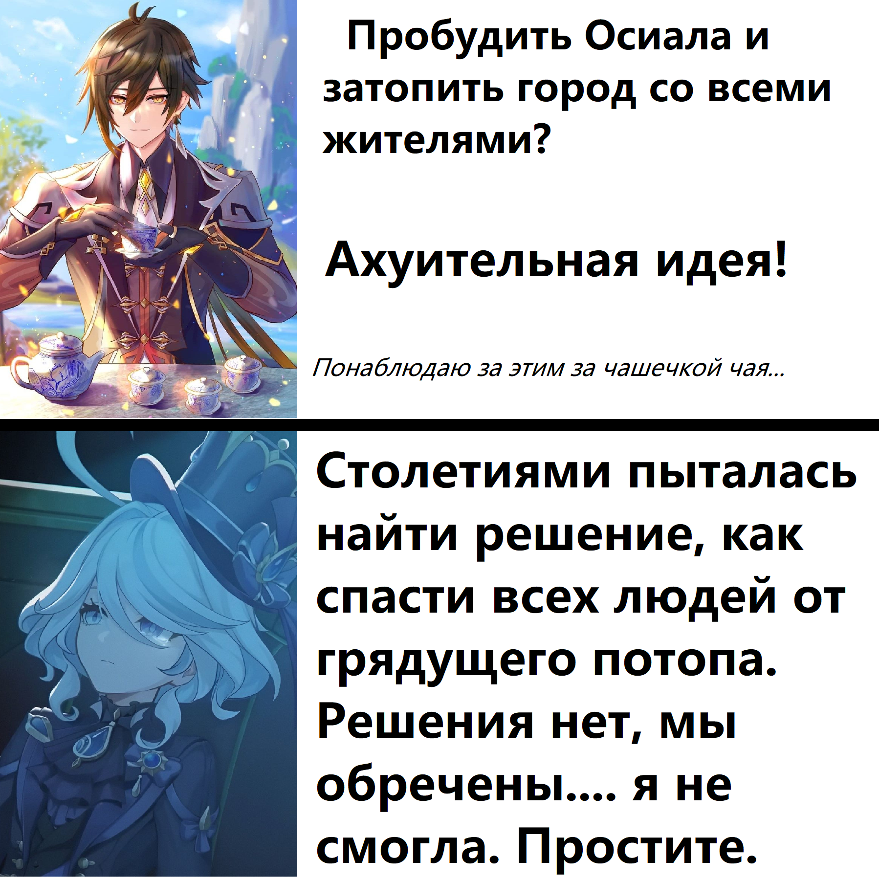 Что же до возраста - в проекте Г на самом деле все это настолько хреново прописано, что и не надо заморачиваться. Это вообще отдельный забавный момент, что примерно пол тысячи лет в Тейвате вроде как нихрена интересного не происходило, технический прогресс не двигался, какие-то великие значимые люди не рождались, серьёзных войн не было - и лишь перед тем, как там появился Чмоня, начался пиздец глобального масштаба по всем фронтам во всех регионах, сразу народ зашевелился, сразу проснулись всякие старые твари... Тупость, конечно
