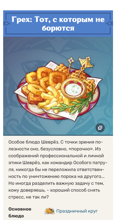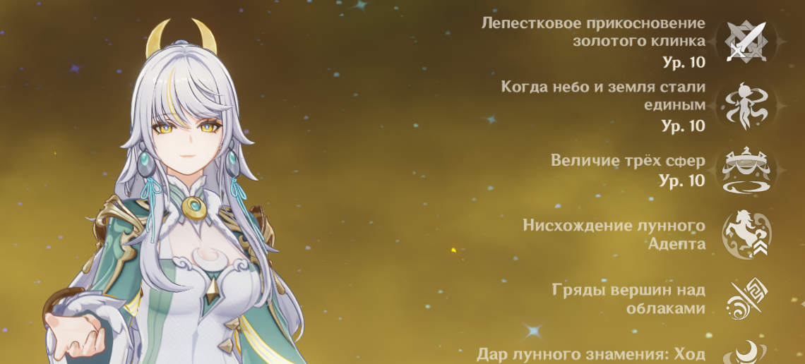 Полностью проскипал регион. Не понимаю, почему никто не говорит, что лунные реакции - это не "реакции". Это тебе не дендро и всякие горения даже, а очередной кокблок, уровня флогистона или пневма\уссии. В лучшем случае что-то уровня Нило-бумов. Разве что Нефер понравилась от части, напомнило Мобиус из hi3. Но как я только понял, что без кучи подсосов на констах она не домажит - передумал её крутить. Я даже жалею, что выкрутил Мувику с2 r1 и к ней +Ситлали с1 r1 +Часку с0, ибо без Шилонен это пачка не играбельна или я так и не понял, что с ними делать за столько времени. Использую Мувику лишь в пачке с Арлей, чтоб из кармана хоть что-то пукала время от времени.