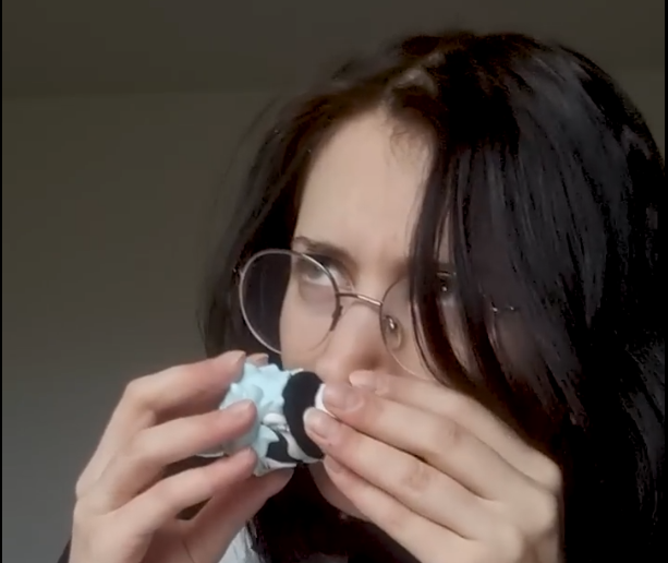 Дрожащими руками она достала из кармана потрёпанную маску, надела её и прошептала: