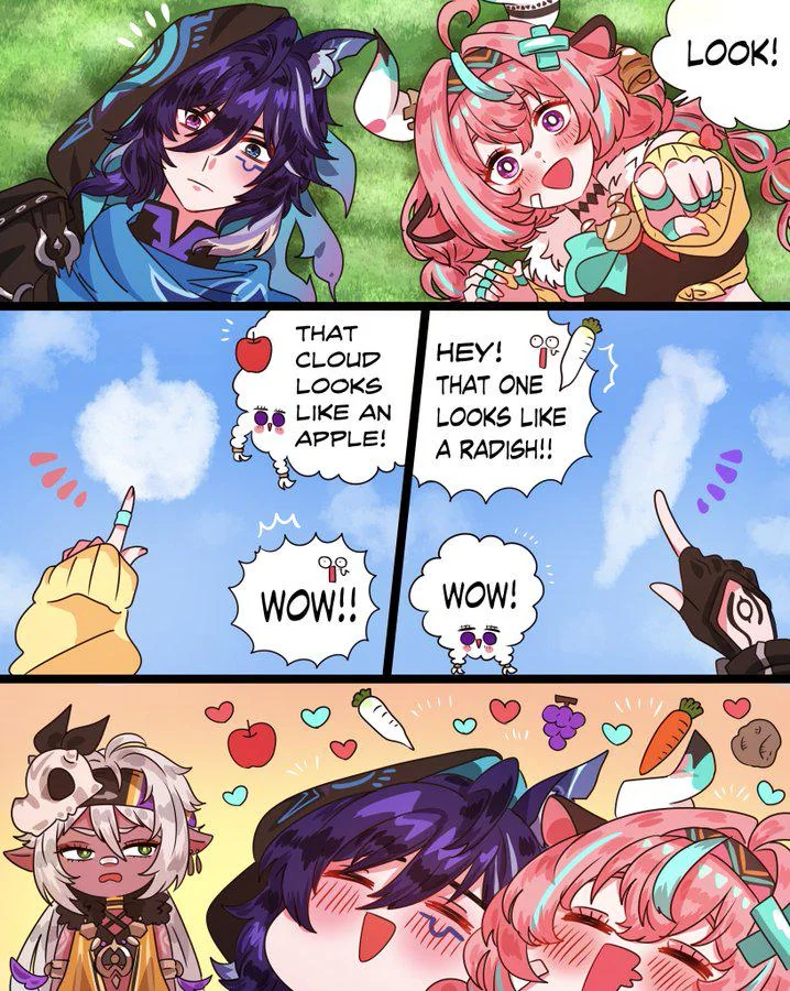 1. К Шень Хэ подкатывали на концерте и на работе, безуспешно. 2. Альбедо называли внешне привлекательным какие-то мондштадтские женщины, несмотря на то что он гомункул. 3. Статуя ворона сохнет по Моне. 4. У мистера Делюкса есть личная воздыхательница, она ещё в Паралогизме упоминалась. 5. В тюрьме есть женщина, которая села чтобы полюбоваться Нёвиллетом на судебном заседании. 6. Улыбчивый Янь Сяо говорил, что Сяо (не который улыбчивый, а играбельный) красивый и его так называют. 7. Аято называли красивым какие-то женщины в комиссии. 8. Чайлда называли "претти боем", но это может быть подъёбка. 9. На цыгана без коня Кэйю вешаются женщины. 10. Странника (уже после Ирминсуль-инцидента) в Академии называют симпатичным мальчиком с тяжёлым характером и устраивают сюрприз-вечеринки. И вообще по канону он красивый, мамка таким сделала. 11.Про Кавеха говорили, что он на мамку похож и что мамка у него красивая. 12. У деда в описании, что он красивый. 13. Дэхъя считается сумерской красавицей, и среди наёмников это обсуждается. 14. Нин Гуан называли красавицей, где-то среди неписей Ли Юэ точно было, и среди секретарш. Одна представляет её без одежды. 15. Похитители сокровищ называли Байду "красоткой с повязкой". 16. Син Цю описывается как "прекрасный юноша". 17. Нилу называют "сошедшей со сказок" или что-то в этом роде, мол сказочная красота, всякие пассажиры у театра. 18. Дотторе во времена Академии (когда был Зандиком) считался привлекательным среди студенток, одна даже за ним пошла в поход.