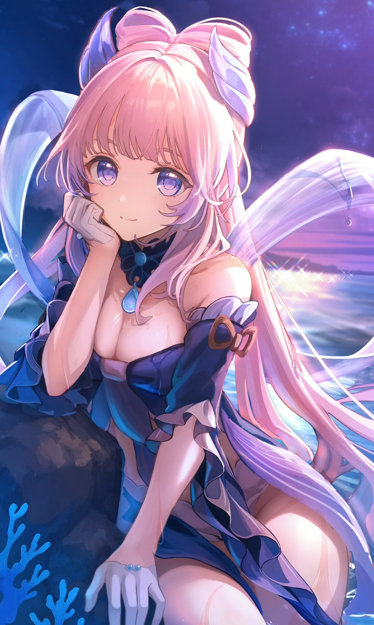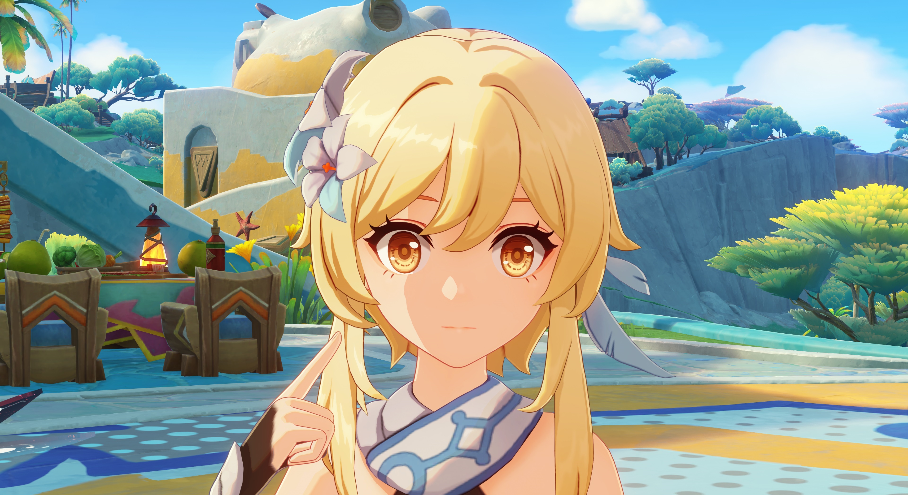 Игра с освещением в этой локации реально великолепна, я что-то даже удивился, вроде на Unity сидим, а графон прямо завораживает. Не знаю, кто спецэффектами в MiHoyo занимается, но вот тут прямо идеальная гамма оранжевого на закатах, сразу торкает в душу и даёт ассоциации о каком-то летнем лагере, 21:00, свободный час до отбоя, можно посоциализироваться немного, всякая запоминающаяся ерунда или драки обычно после 21 и были, поварихи мне остатки крендельков отдавали, такой "час событий". Или когда шашлыки на природе у побережья подходят к остатку, все уже весёлые и поют. Прямо идеальные виды, да и ночью эта локация невообразимо красивая, атмосфера ночных прогулок в три утра. Если бы какая-то кастомка на основе этого пляжа была, можно было бы сделать симулятор (ко-оп) попойки в три ночи после тусовки, аля "Мальчишник в Вегасе" или квеста в Скайриме, где нужно было накидаться с магом-даэдрой.
