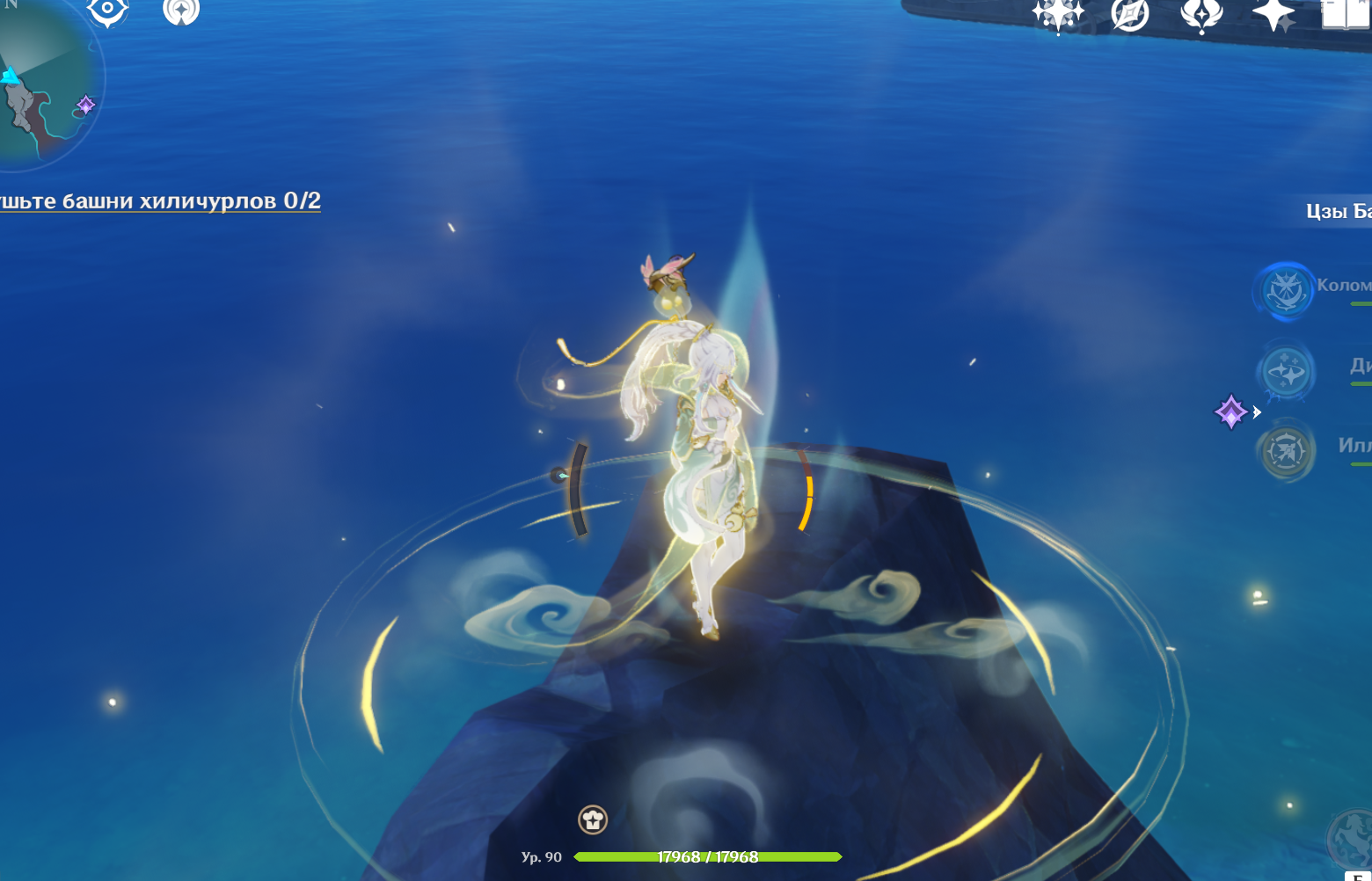 На последнее место без Фурины можно кого угодно из гидровичков ставить для резонанса, ту же Мону например чтобы заливала восстанову с книжки. Впрочем можно и без гидро резонанса, шило с2 например. Щиток краба всё равно слетит с 1 струи и немножко с руки ударов.