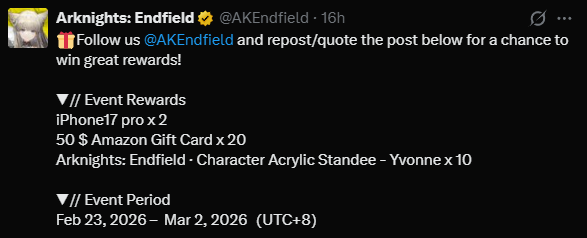 @monkey почему endfield ОБРЕЧЁН БЫТЬ ЛУЧШИМ и так стремительно завоёвывает сердечки? потому что hypergryph не дебилы и взяли всё лучшее из аркнайтс - база-билдинг, тактикал с элементами экшена в открытом мире 3d, плюс графика на unreal не для мобилок а для пк/консолей. тесты показали стабильный фреймрейт даже на средняках, ивенты раздают оберы как семечки заранее.