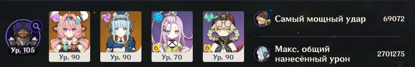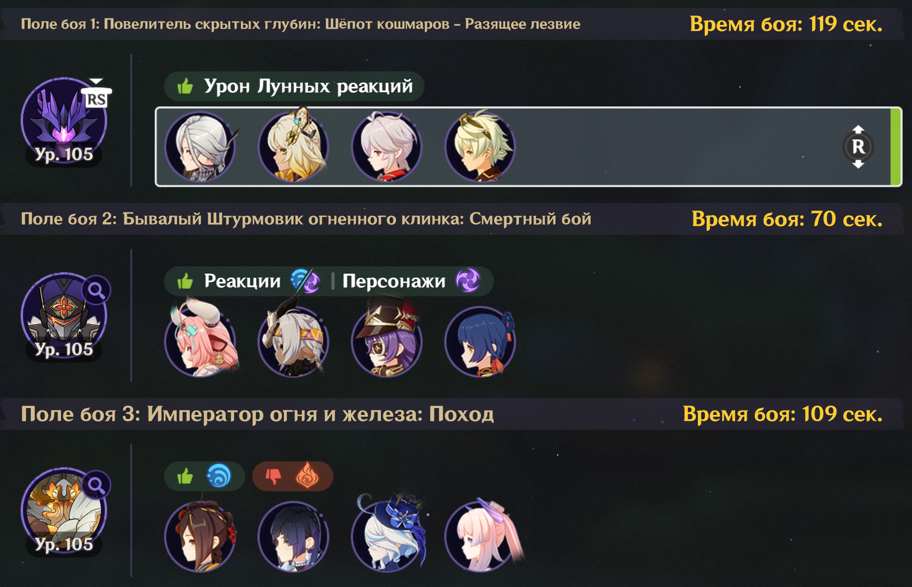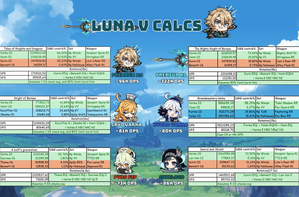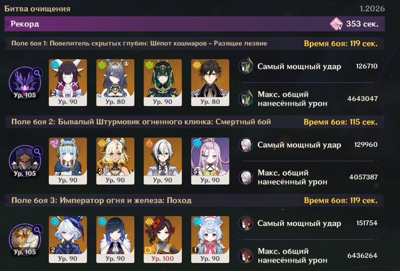 > Теперь пошла такая пьянка, что нужны уже ЧЕТЫРЕ леги нахуй, да еще и с сигнами. Цзы Бай норм и в пачке с 4звездочными Иллюгой и Айно. И еще геодед, но раньше все игроки крутили всех архонтов, так что должен у тебя быть. Опять же, на средний дамаг против среднего босса смотреть не нужно - это против кокблок боссов, когда лунной пачке достаточно 70к дпс тогда как не-лунной пачке нужно 150к.