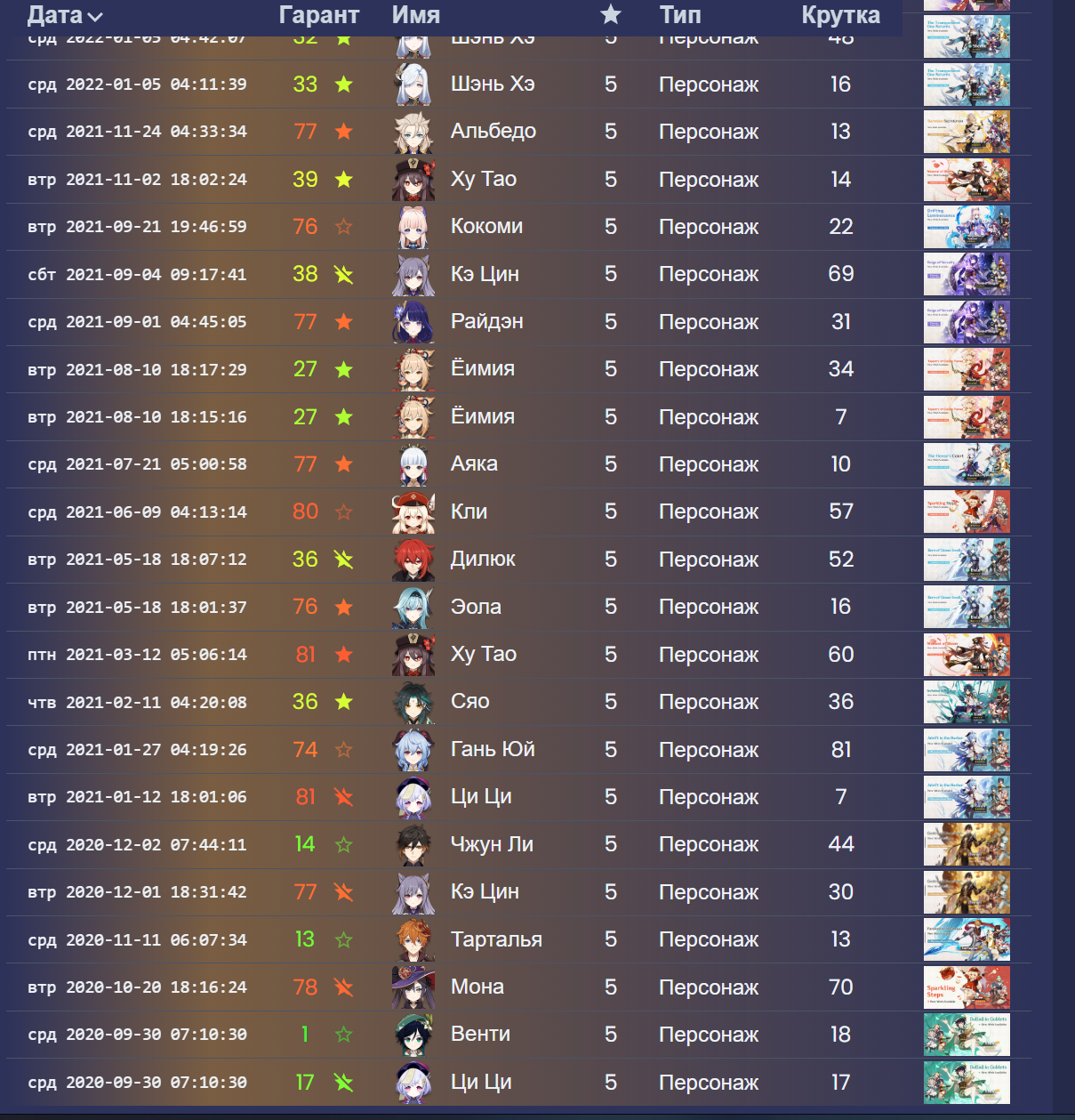 >>6467040 Нету Аято, Сайно, АльХайтама. Из них намеренно пытался крутить до флипа только Сайно (ну реально классный дизайн, Анубис прямиком из "Звездных врат"), не свезло на флип, джва раза.