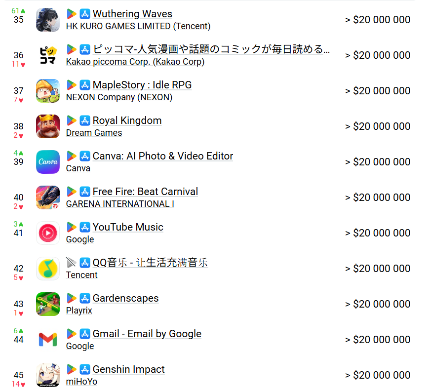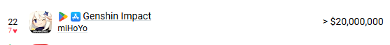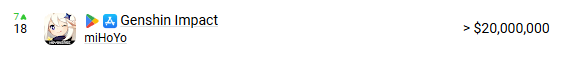 >>6468058 Ну так, не смотря на все разговоры о смерти геншина, его база игроков на тех же мобилках в 10 раз больше(126 миллионов против 12,9 миллиона) - и это только по данным гуглпея. Более того каждую неделю в игру вливается в 2 раза больше игроков чем в вуву 36к против 18к.
