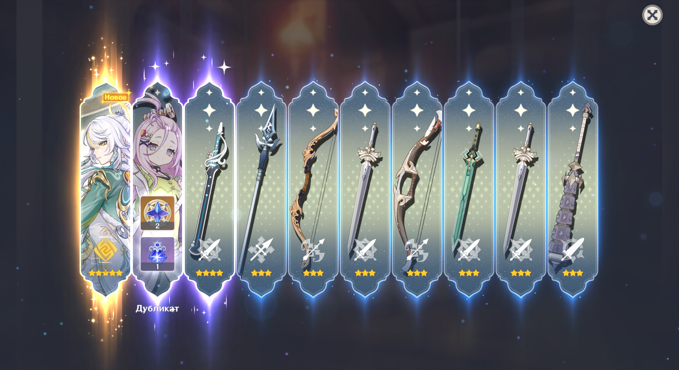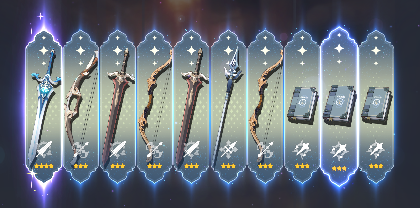 Какая же жижа на баннере, капец, Флинс ладно, давно выкручен, Варка выглядит сомнительно, не лунный, шабаш себя не оправдал и ничего особо не изменил, ещё и анемо, там норм дамагеры никогда и не водились. Четверки просто блин самые старинные, нет бы там детектива поставить (был на баннере года полтора назад) или что-то поновее посвежее, да хотя бы Оророна. В оружии буквально одна волына и куча фавониев, которые даже самым распоследним новичкам нафиг не нужны, потому что падают всегда. Копье на КШ ок, кстати, для Инеффы или Эскофье очень даже, особенно на р5, но это такая ловушка Джокера крутить четверку с оружейного. Волына Варки просто мусор без задач, у Флинса фиг знает, у меня вообще коршун есть и тут, похоже, ситуация как с косой Арлекины, где разница между коршуном и сигной не такая уж и большая. Мне кажется, больше за внешний вид крутили, но у Флинса копье прям максимально дефолтно выглядит.