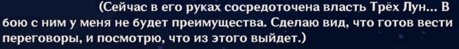 >>6470007 Прямым текстом сказано что гг ждал момента и прикидывался шлангом т.к. ждал возможности нанести удар и понимал что в прямом бою не выстоит. Зато Ляо забавно сломал 4 стену, предлагая через Доктора игроку полеты, паверкрипные силы и прочую развлекуху в попене из ВуВы.