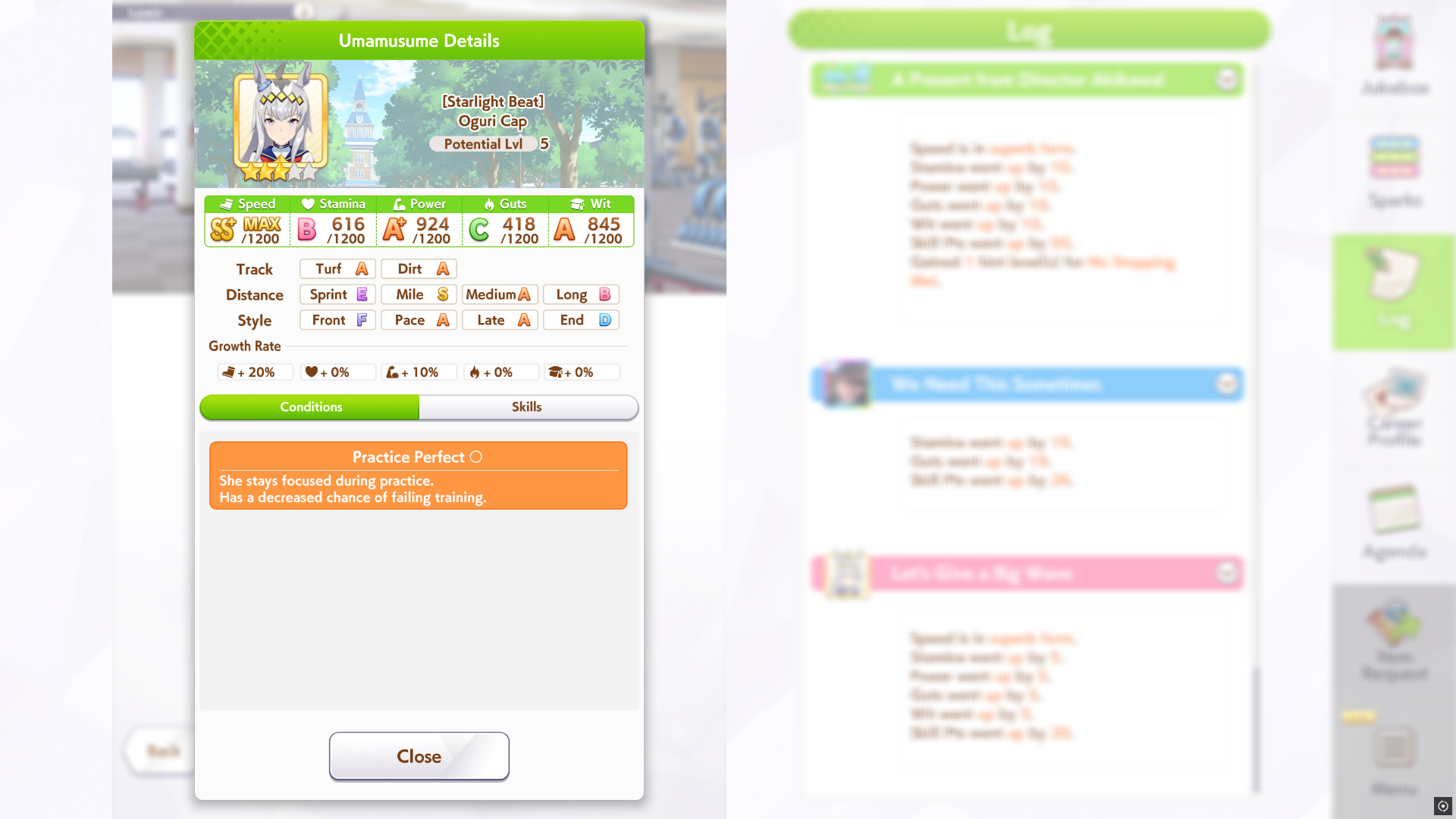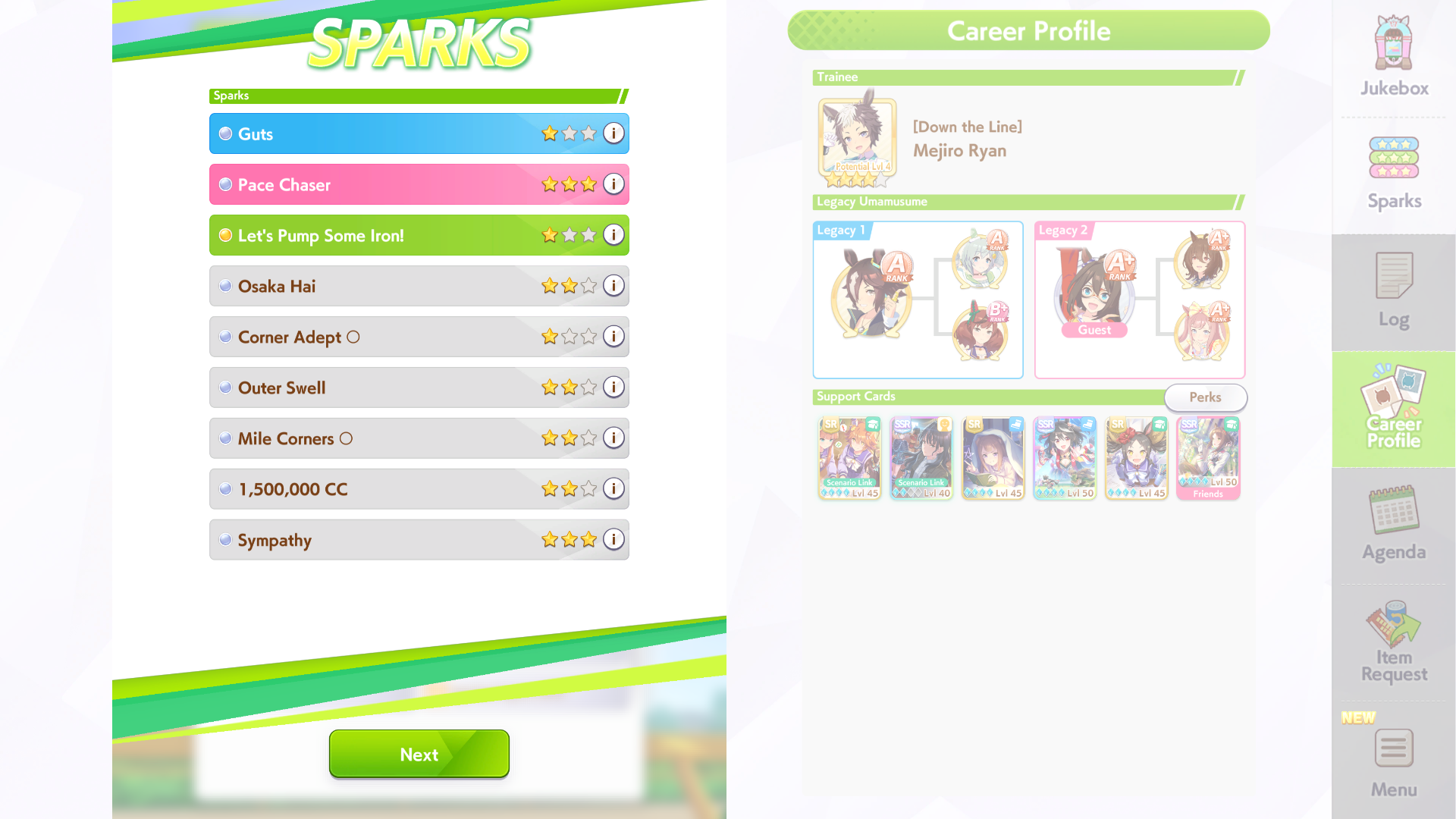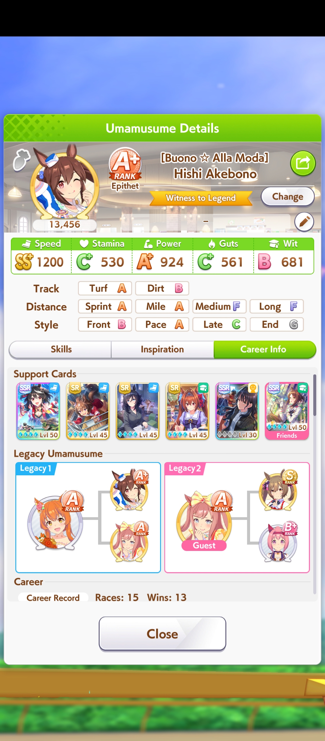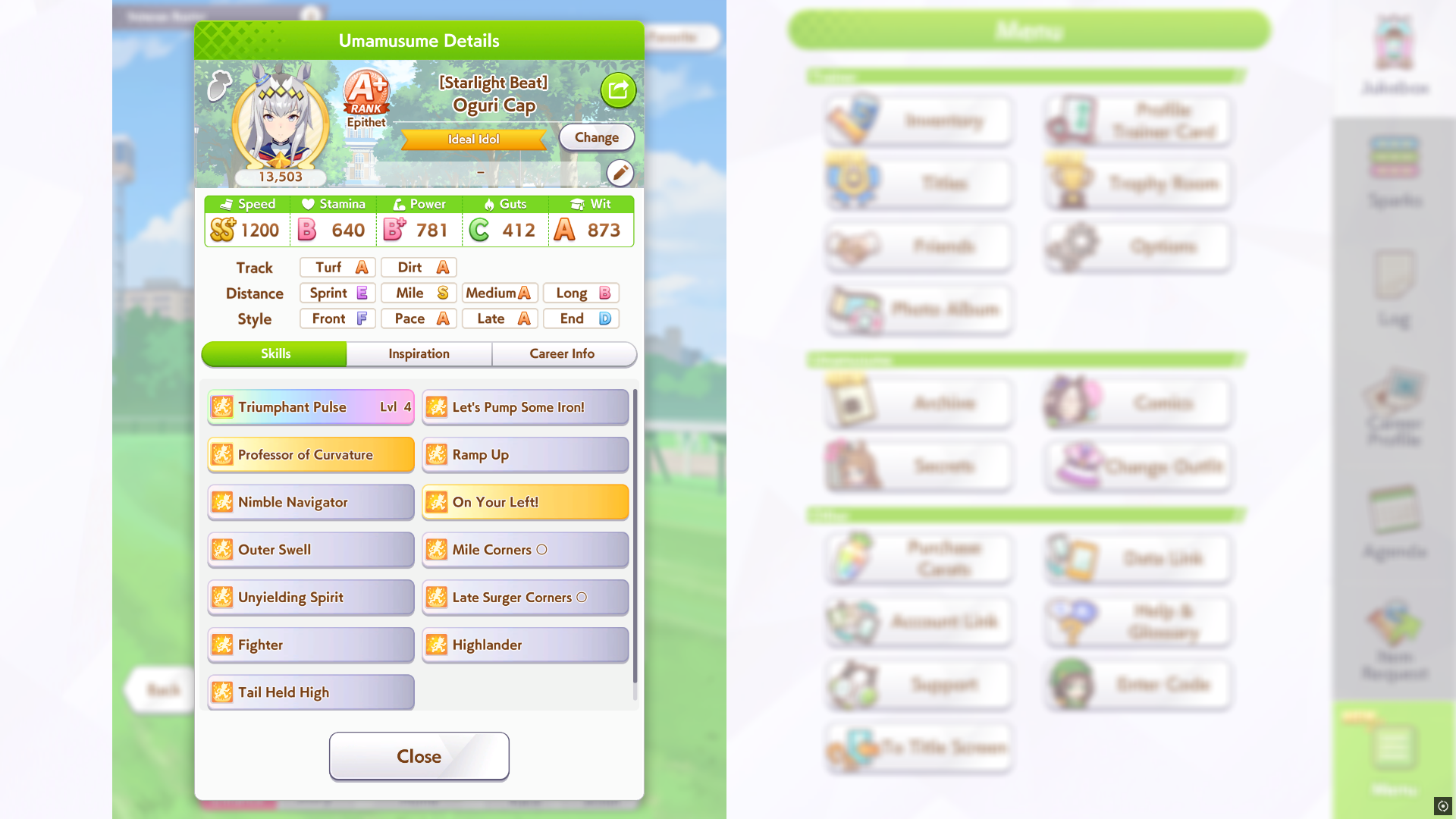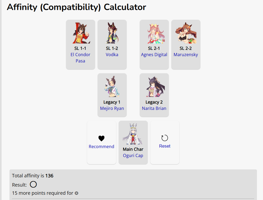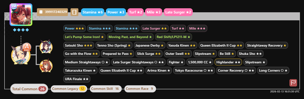 По сути сделал только пэйс Огурю хоть на что-то похожую А+ и то чисто потому что она по дефолту идёт. С Пасой нихрена по сути не получилось, есть варианты на 1150 спида 900 павера и 600 вит, но прямо чето очень такое себе и по скилам почти ничего. И дефолтная Урара полудебаффер на 1100 спида. Пробовал Голд Щичу покачать но она - зараза не тренится совсем, планирую еще маяну если и с ней не пойдёт то даже и идти не с чем будет. Как-то ни к одному турику так тяжко не шло.