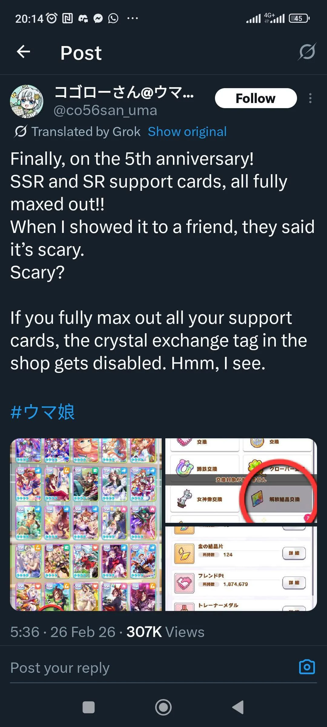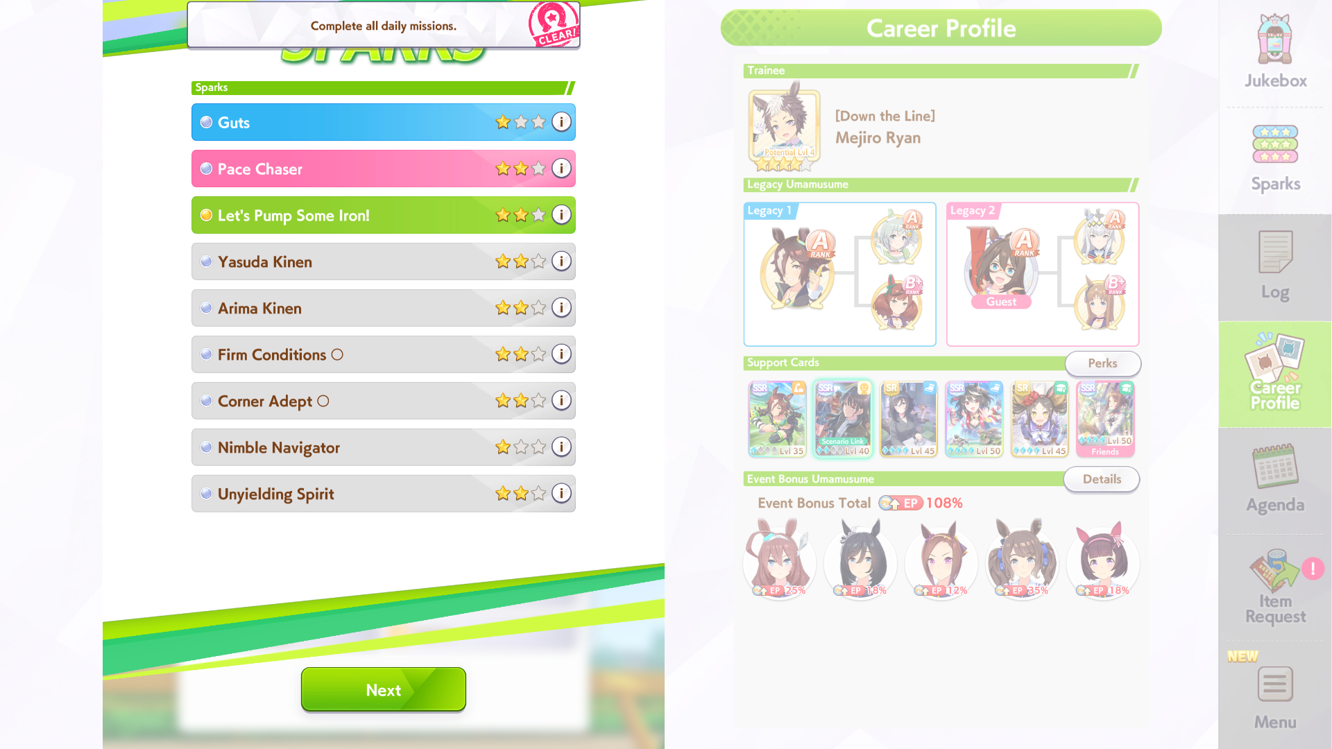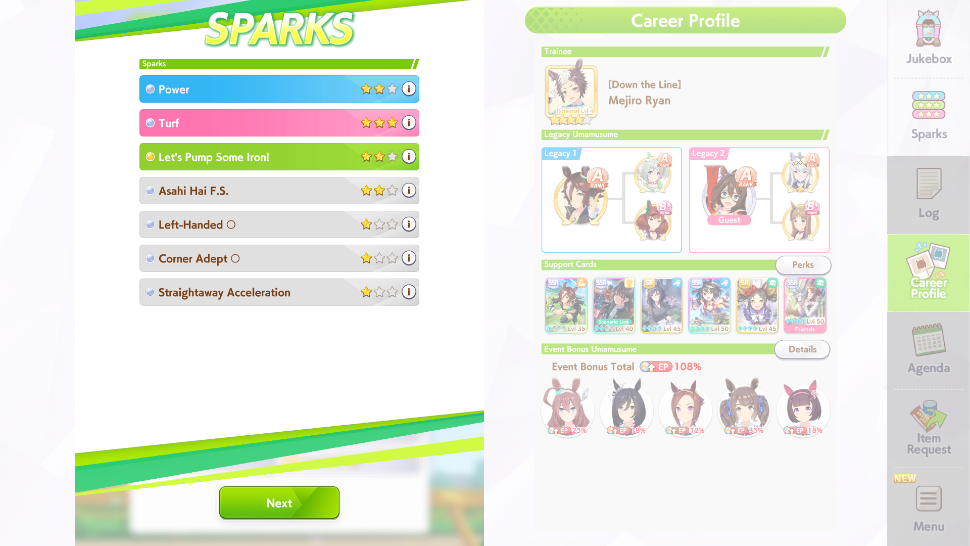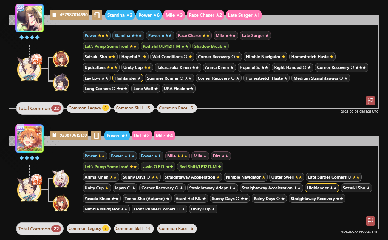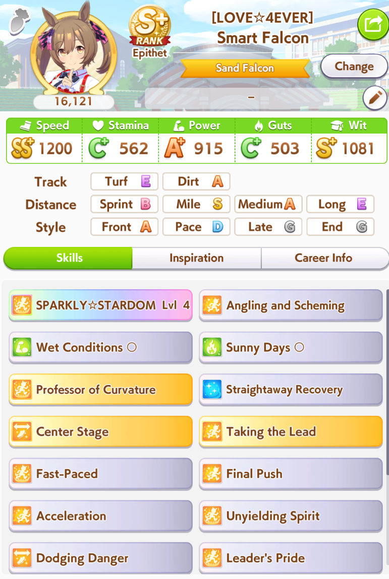 Вот как так получается в этой игре, что когда я трачу дневные попытки на заемных родителей, сижу выбираю тщательно по сайту, потом всю карьеру с калькулятором сижу и получается мусорное говно, которое кроме как на сп обменять больше никуда не поставить. А когда под пиво запускаю фан ран со своими 0 спарковыми умами, читаю новелку и тыкаю в радужки получаются бест статы, бест скоры и бест эйсы, которые фармят очки.