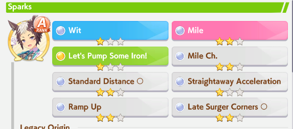 >>6532707 Ничего гигового не вижу. Спуртов нет, много бесполезных скиллов типа слик суржа. Единственное что хорошо - ума стэны есть. Ну и 9 блю спарков с нормальным количеством треков. Юники не то чтобы мастхэвные, юник оперы норм, но можно и обойтись. Пинк спарки кал. Я бы предпочёл фулл лонг в родителях. Ну и на лонг лучше стамина спарков побольше, но тут от тренируемой лошадки зависит.