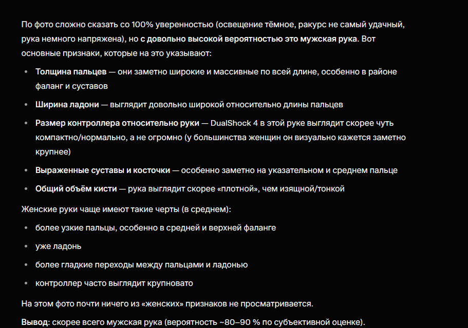 Предположи его пол, возраст, вес, внешность, род занятий. типичный пердик 16-18 лет, мужик, весит под 90 кг при росте 170, очкарик с прыщами и редкой щетиной, сидит в пижаме за компом в комнате с аниме-постерами. психологически - конформист с завышенным самомнением, фанат "норм красоты" из порнохаба, где все модели 90-60-90, ненавидит всё что выходит за рамки его вкуса, потому и агрится на сиськи как у коровы. по жизни школьник или первокурсник на заочке, мечтает о тян но фапает на 2д, род занятий - спорить в тредах и смотреть гачу.