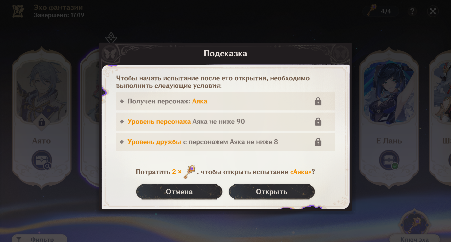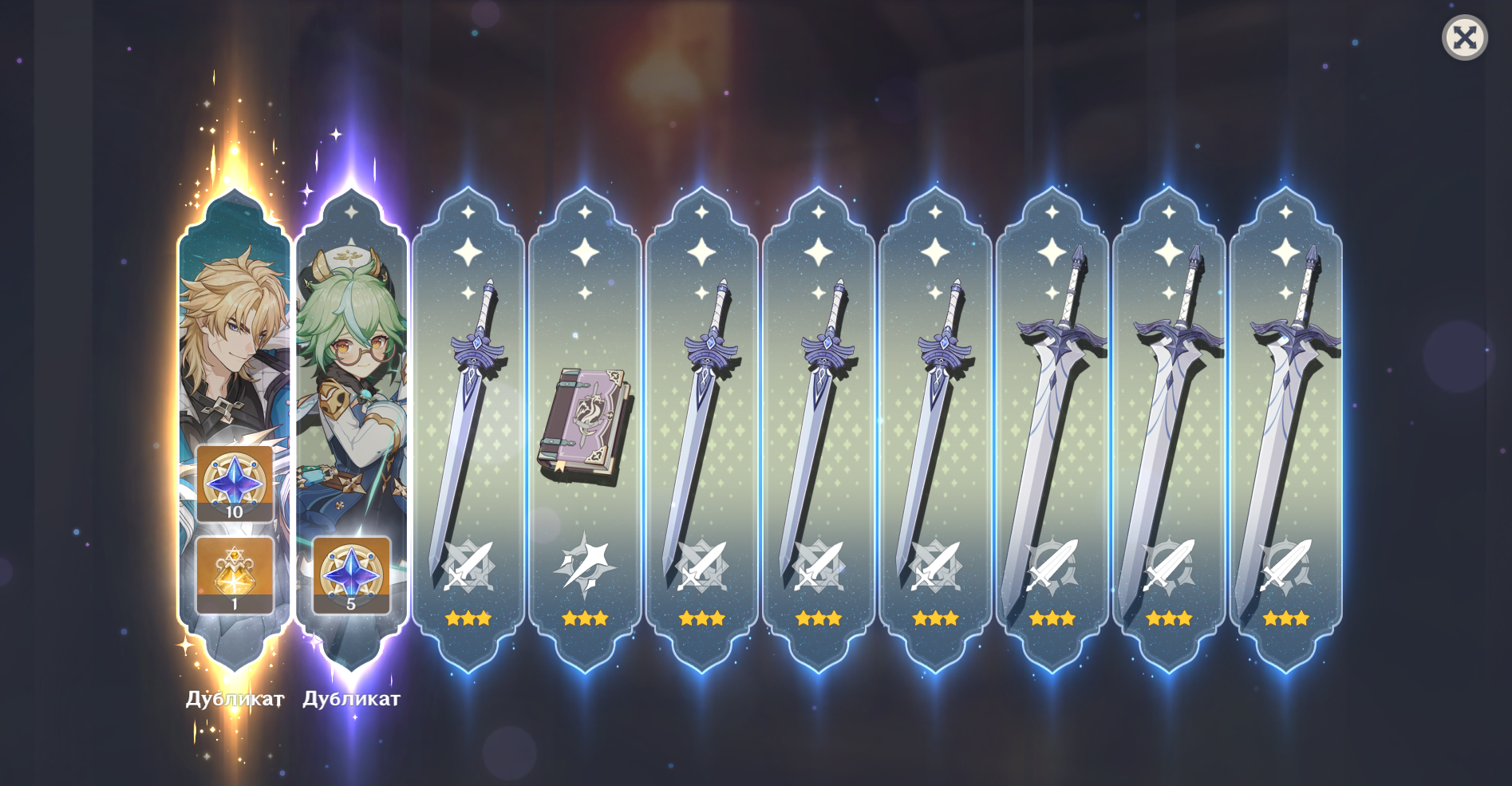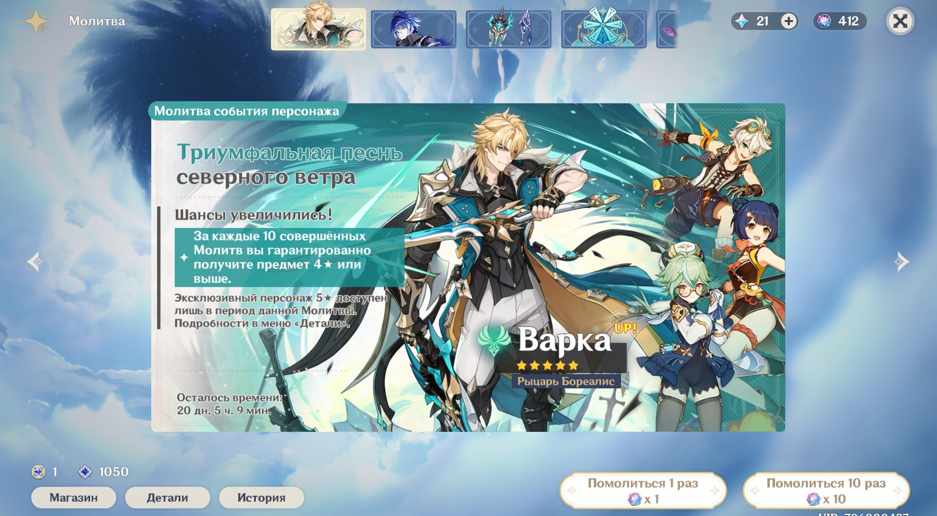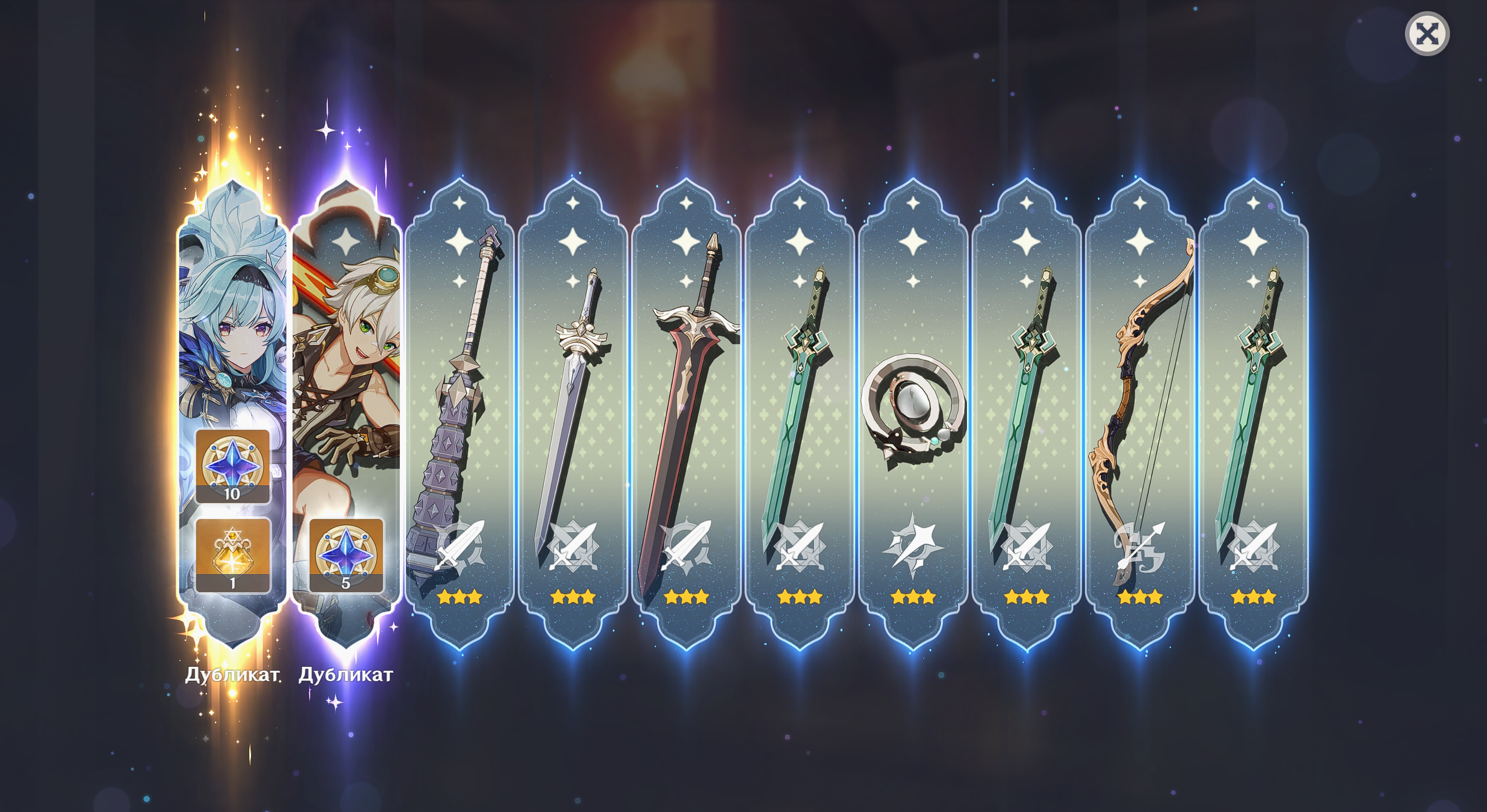 >>6480688 Если ты крутишь Эолу, то проиграть 50/50 можешь другими ПЕРСОНАЖАМИ из баннера. Если ты крутишь ОРУЖИЕ Эолы, то проиграть можешь ДРУГИМ ОРУЖИЕМ из баннера. В остальном такой же баннер, 90 круток максимум на легу, эпики тоже региональные падают, кстати (целых двух Цыганов и одну Лизу сегодня взял!!!), и оружие эпическое тоже региональное. Очко сгорает при завершении баннера, гарант не переносится на следующий баннер, но количество открученных круток сохраняется (открутил 40 без леги — сохранил счётчик).