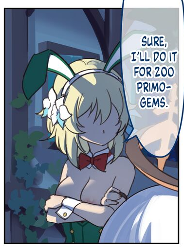При этом жирушная блядь почему-то не сравнила Варку с падисарами Фонтейна или Сумеру, ведь неудобно сравнивать с сосисонами, на которых она каждый вечер наяривает свой протухший вареник
