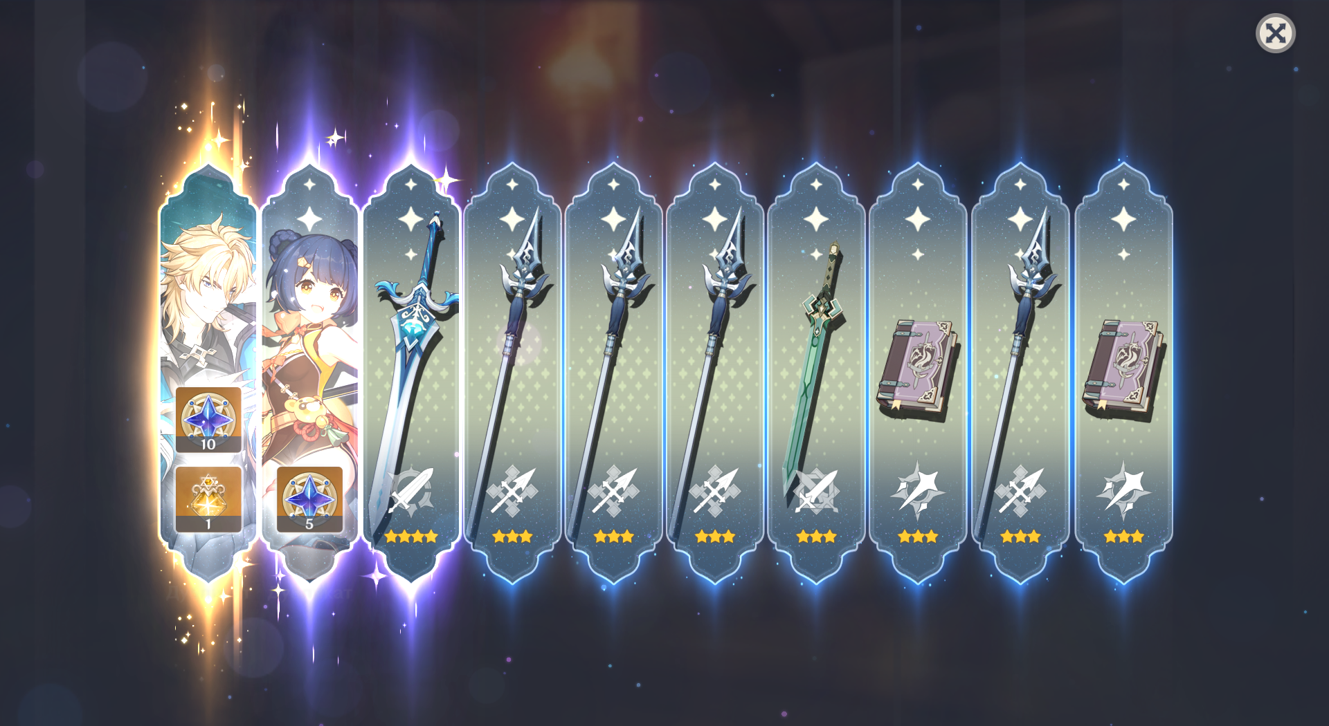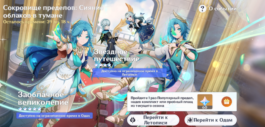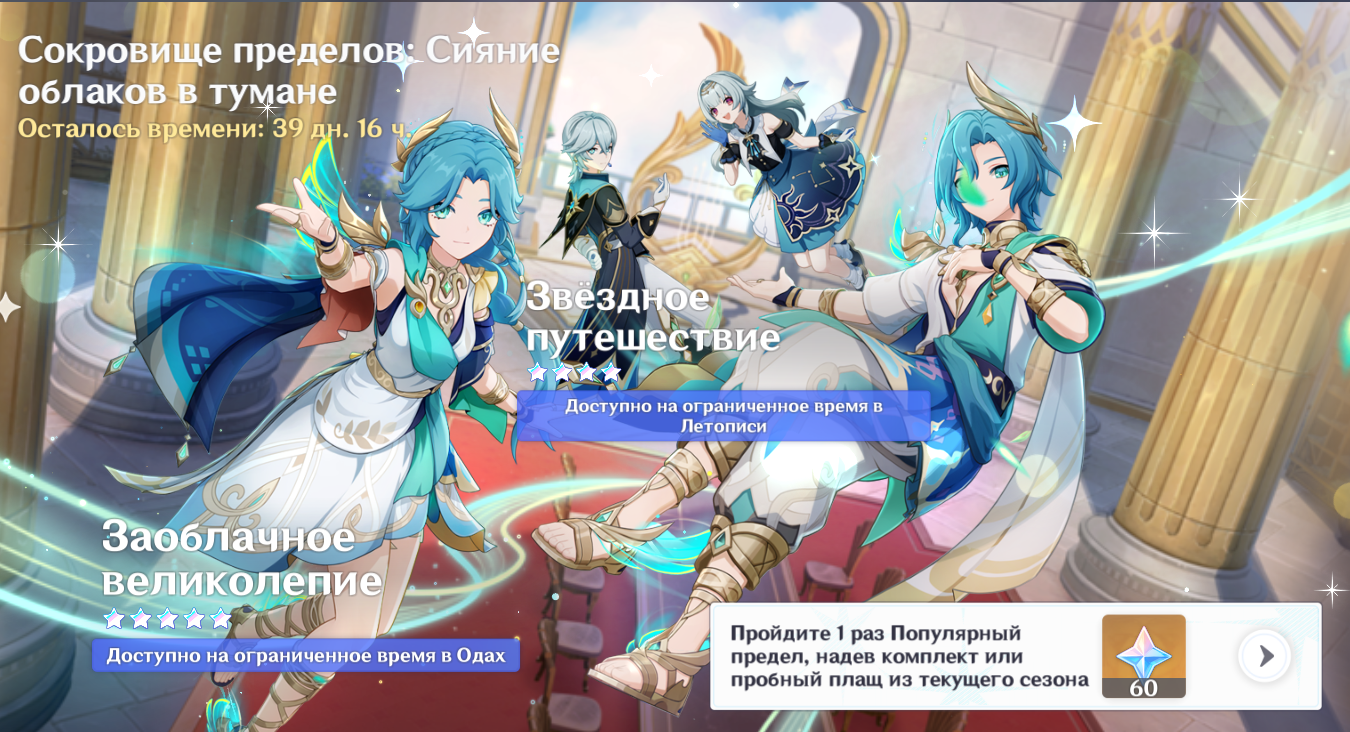 Банер хроник, банер нового персонажа, первый реран очень важного под кок блоки персонажа. И две крутки. Ляо падсиар космических масштабов, а потом под лоэна который мне не всрался и под николь, которая не понравилась выдаст 70 круток