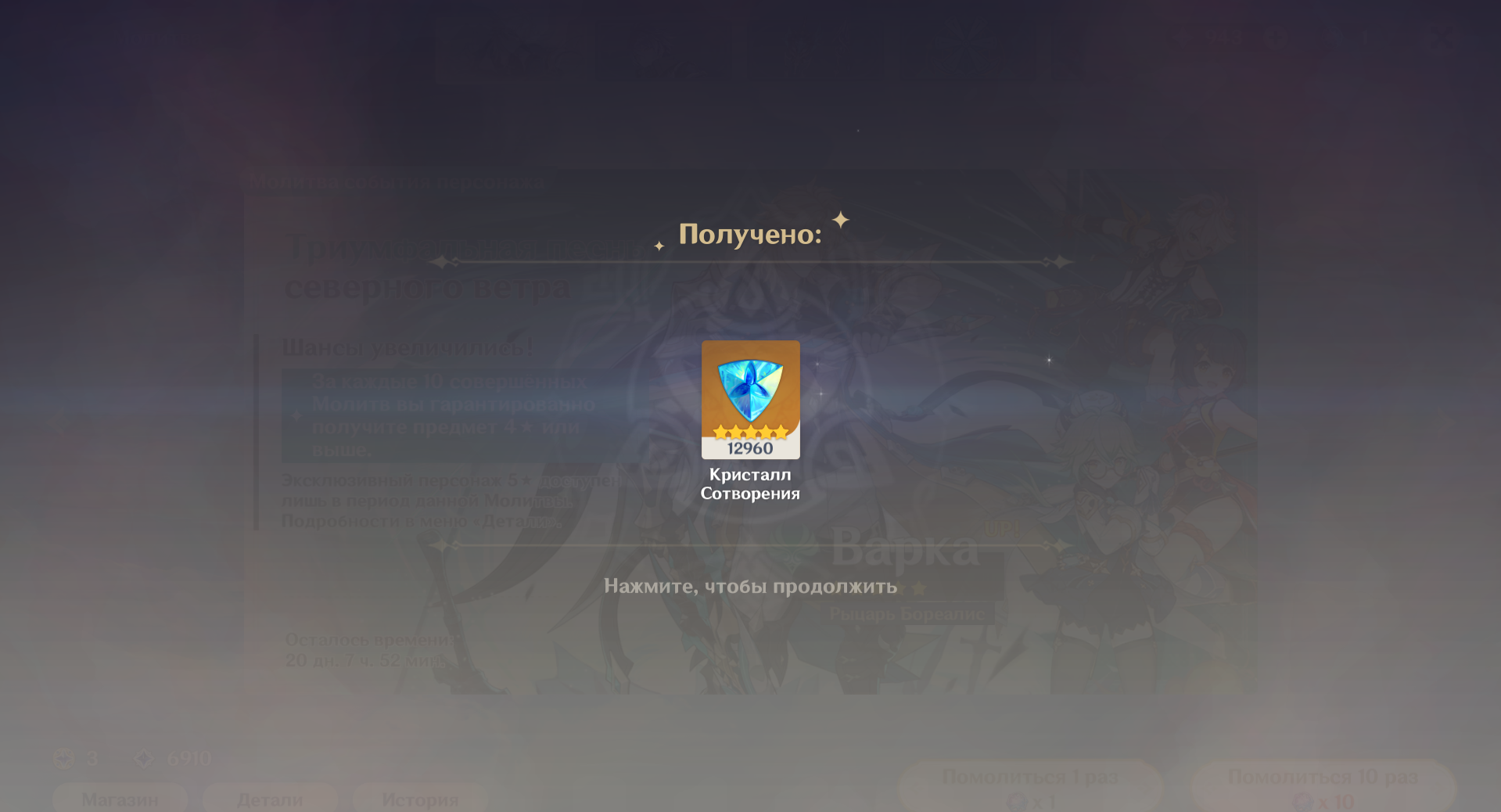И Кли забрал, и Эолу, и всего за 223 круточки. Зато теперь коллекция собрана, больше нет старых персонажей, которых надо крутить, теперь только свежие баннеры и свежие персонажи, господи, как же хорошо, сижу и улыбаюсь как дурак. Как и планировал, расчехлил ради этого всё, кроме макспака, оставлю его для Линнеи, если не накоплю за это время достаточно.