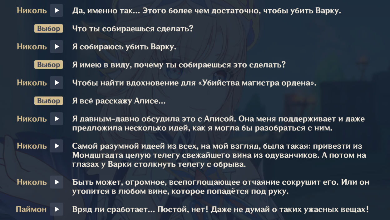 Теперь планирую проходить по 20 минут от квеста в день, ибо после последнего сюжетного квеста где ты 7 часов подряд просто жмешь на пробел и читаешь море воды я пиздец выгорел и все желание начинать какой-то новый квест прoпало.