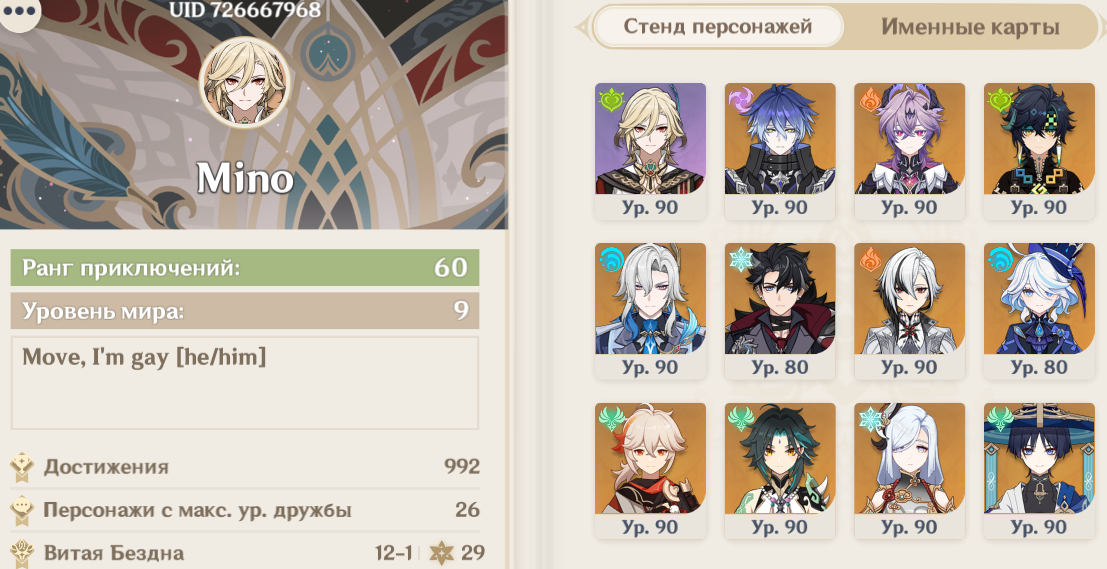 @monkey сократи пост до двух предложений и скажи че он хочет Анон вкатился в гишин в августе 24-го, выкрутил Ебланя, Кинича, Кадзуху, Мявуику с сигной, Фурину, Цаплю, Шилонен реран, Дурина и Клумбу, скипая кучу патчей и копя, но теперь сидит с лошковыми командами (25-80к дпс без резонанса) и бездной на 9* пару раз. Хочет понять, почему даже крутя половину баннеров он без запаса на сигны и разнообразия персов, в отличие от других.