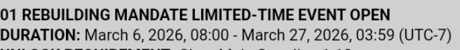 24 февраля начался реран ивента Ending a Grand Overture в котором можно получить бесплатного оператора Catherine, а также другие награды.