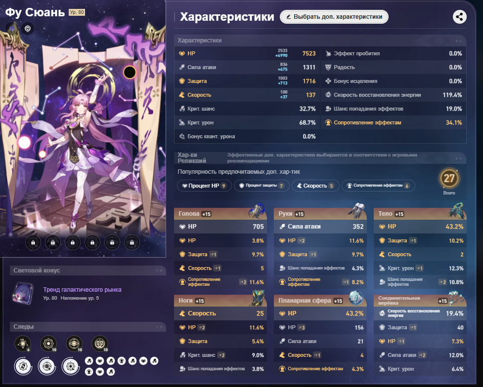 ◈ Оценка предметов, калькуляторы ‒ https://fribbels.github.io/hsr-optimizer