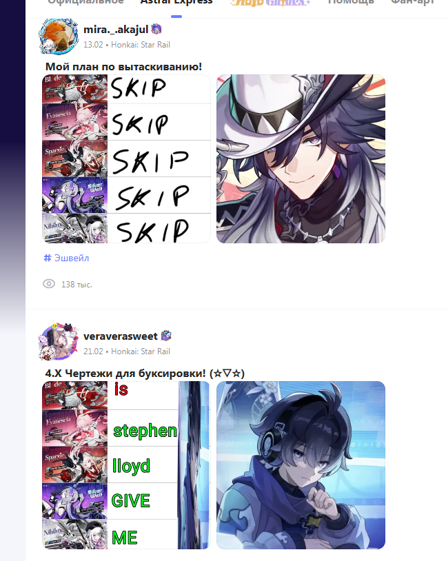 ◈ Трекеры ‒ https://starrailstation.com/ru/warp#char_event | https://stardb.gg/