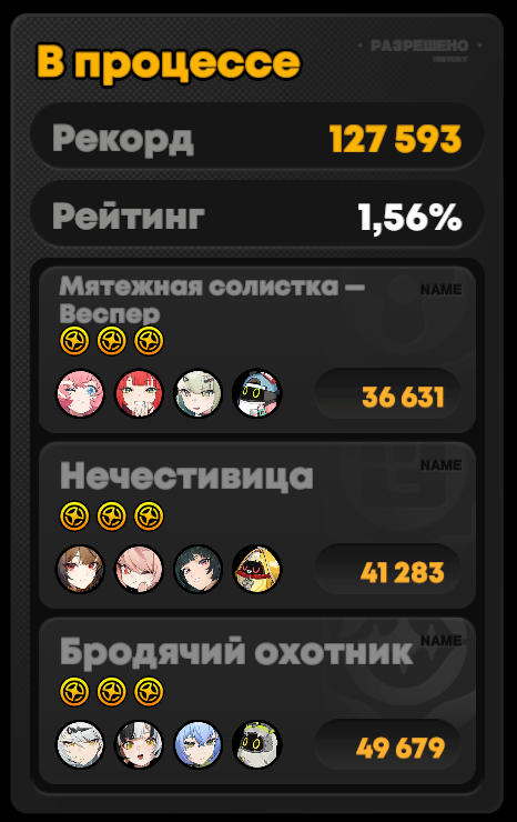 А вообще я как недавно начавший играть хуею с апанья агентов. На один 60 уровень и все статы одного агента гриндить с неделю надо, и ещё диски где надо чтобы выпали правильные статы и плюс они запрокались правильно. А Иначе разбор с потерей 20% материалов для апанья (зато теперь апаю по три уровня и смотрю что прокается, если прокается то что не нужно сразу выкидываю). Охуеть вообще.