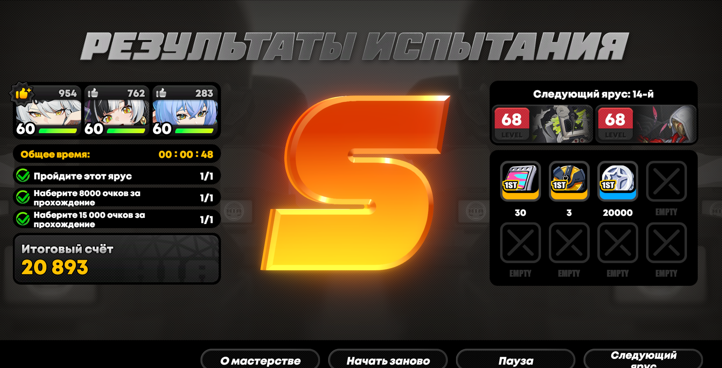 Ну и да, пришлось расчехлить сигну на Санне. На Робота сигны нет и не будет, так что не убью. Думал вообще реально типа ~60k взять c М0Р0 Ария + М0Р0 Санна + М1Р0 Юзуха, но чета походу не реально.