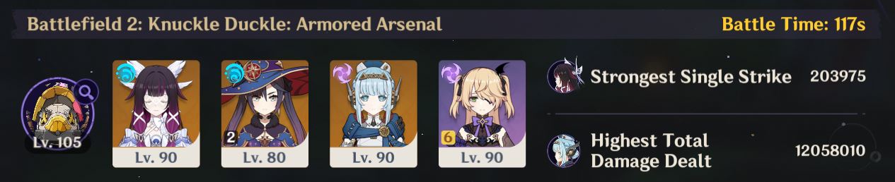 Не думал, что утенок такой большой проблемой для меня окажется, мда, ну попробую Фишль вкачать, ибо больше делать нечего, хотя сияние высшее и лунный заряд в тиме с огромным уроном.