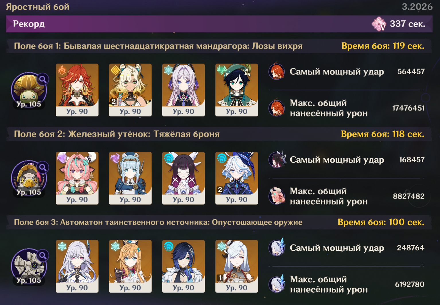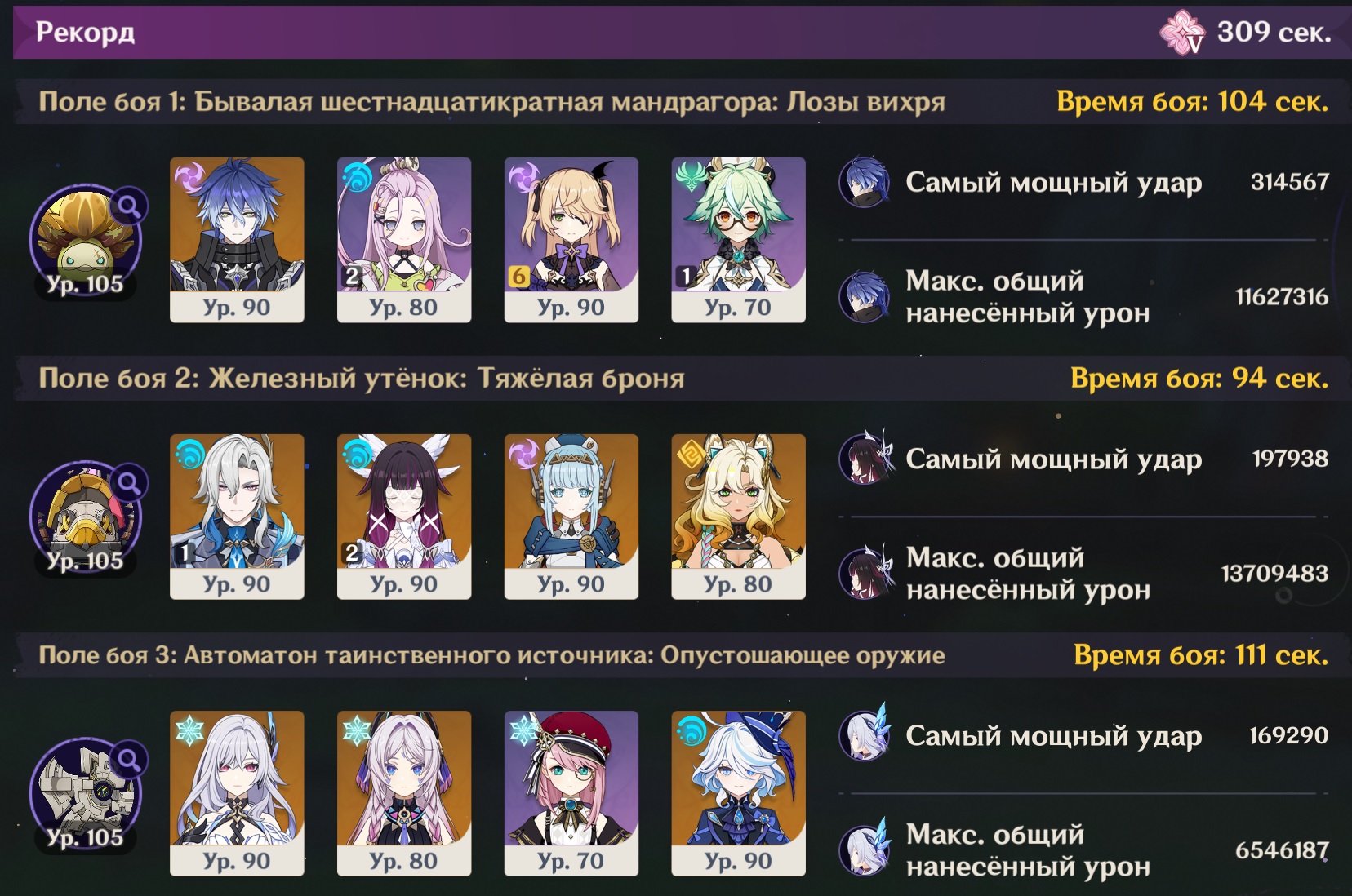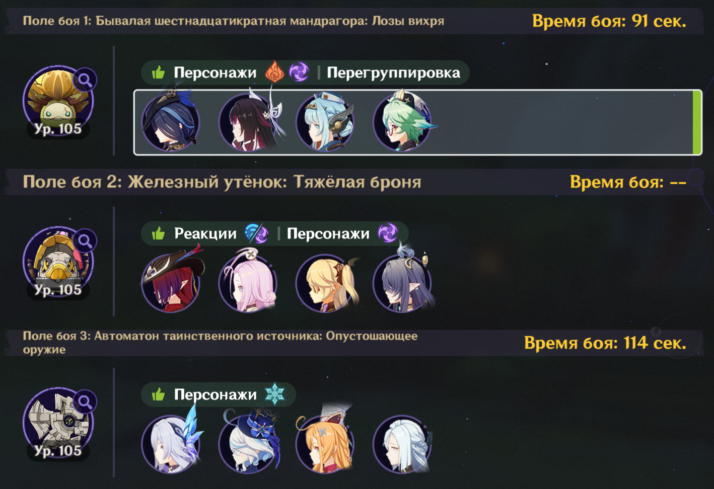 Посмотрел на пикрилах как многие проходят на лучший таймер чем у меня. Видимо че то не так делаю Ульта венти всегда красится в пиро тк Мявуика срет из кармана. Как то надо сделать чтоб в крио пошла инфузия Еще крио робота проходят быстрее. Вот тут хз где можно выиграть время, у скирк прямолинейная ротация