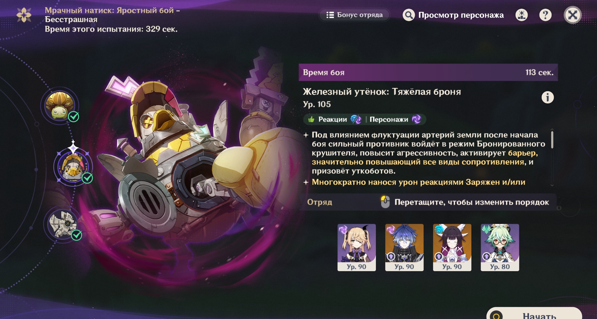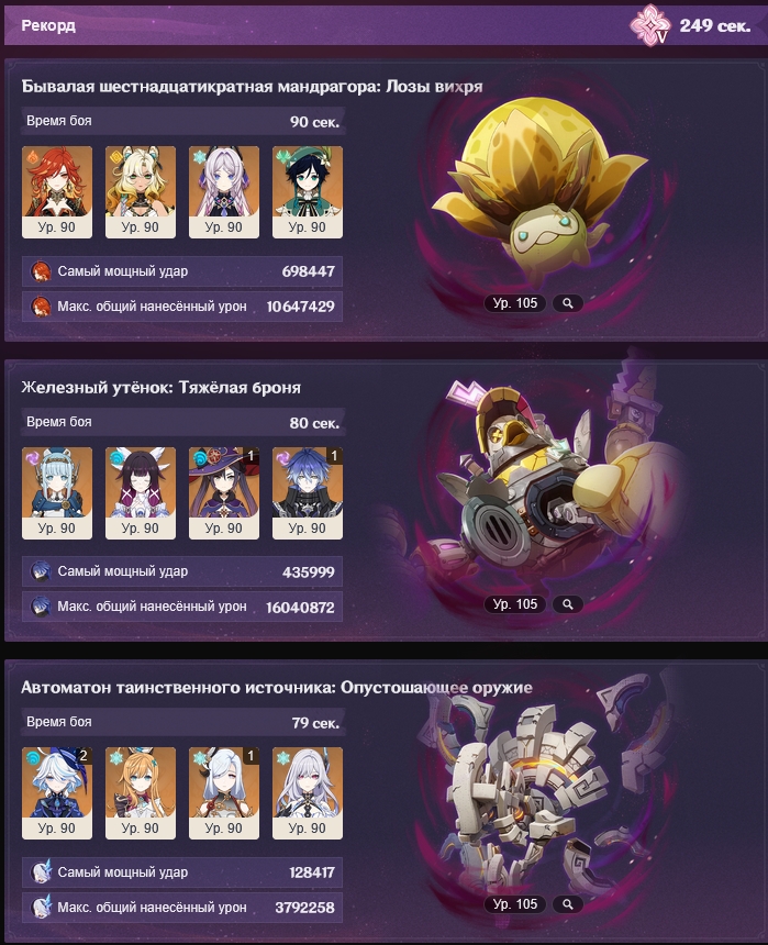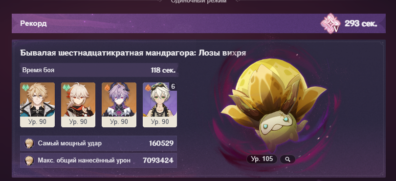 Побил утенка тремя разными вариантами анемо и везде один и тот же результат, нет разницы между Сахарозой с сигной Мидзуки, с эпосом и Казуха с ксифосом р5, буквально то же самое время, абсолютно идентичное. А что тут подкрутишь, разве что каким-то образом добить до второй волны мелких роботов, но, по-моему, анрил, тупо не хватит урона, остается не так много hp, но и не совсем крохи.