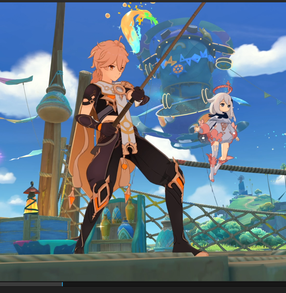 Короче, прикол. Я фармил еженедельного Скарамучу. В отряде была Часика. А она во время (де)активации ешки изаёт свист. И так получилось, что в один удачный синхронный момент её свист прозвучал так гармонично с саундтреком босса, что я в голос проиграл. Это прозвучало как свист в начале припева в видеорелейтед, тютелька в тютельку. Как на 0:17, например