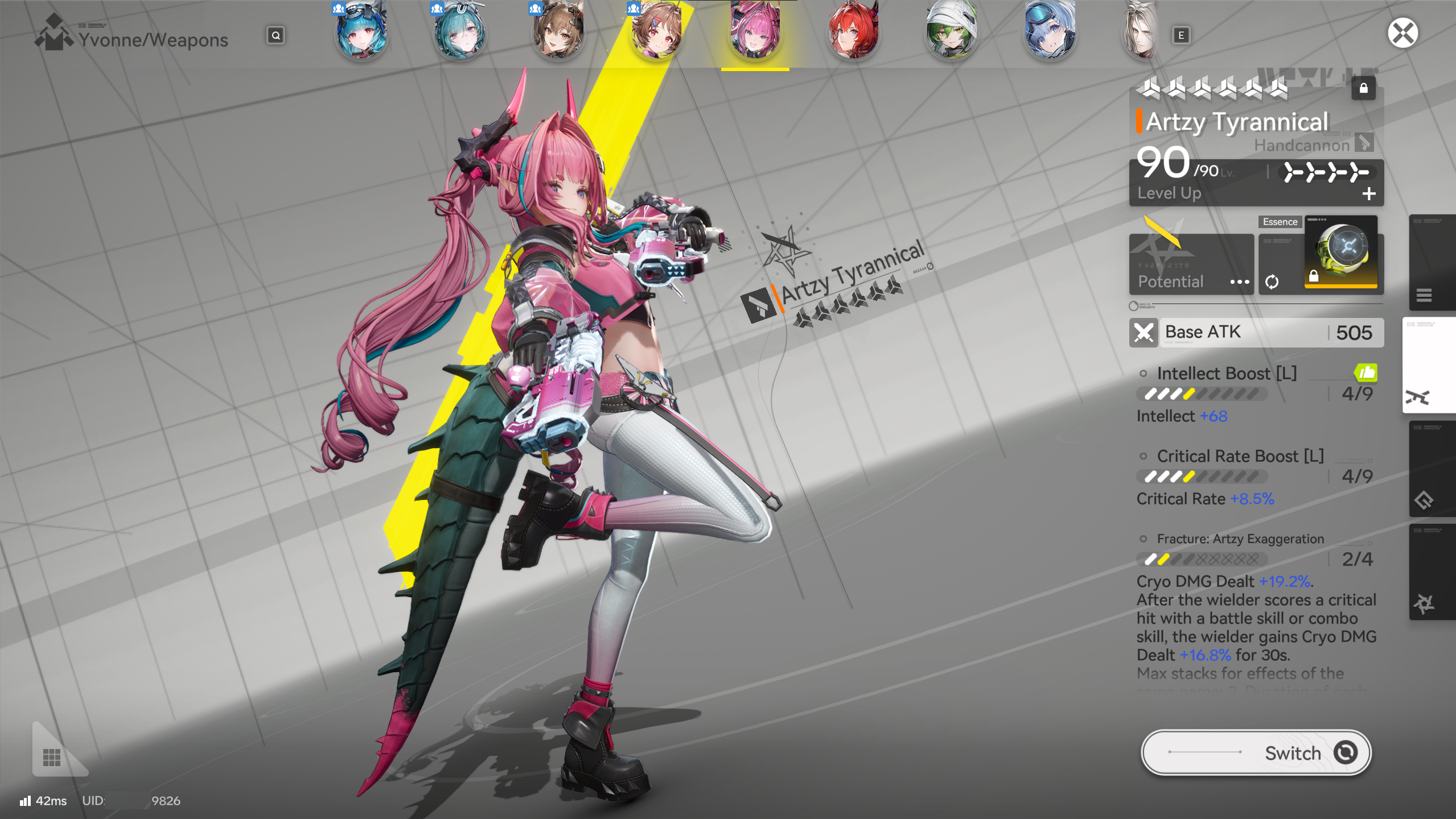 запись - 4 последние цифры uid + потенциалы (0-5) персонажа и оружия